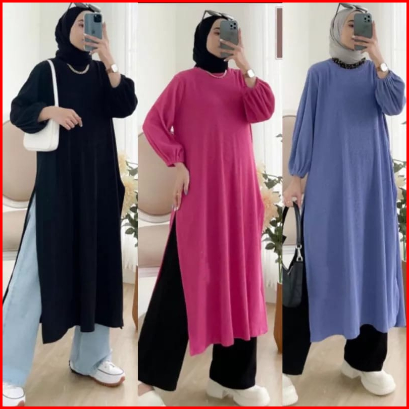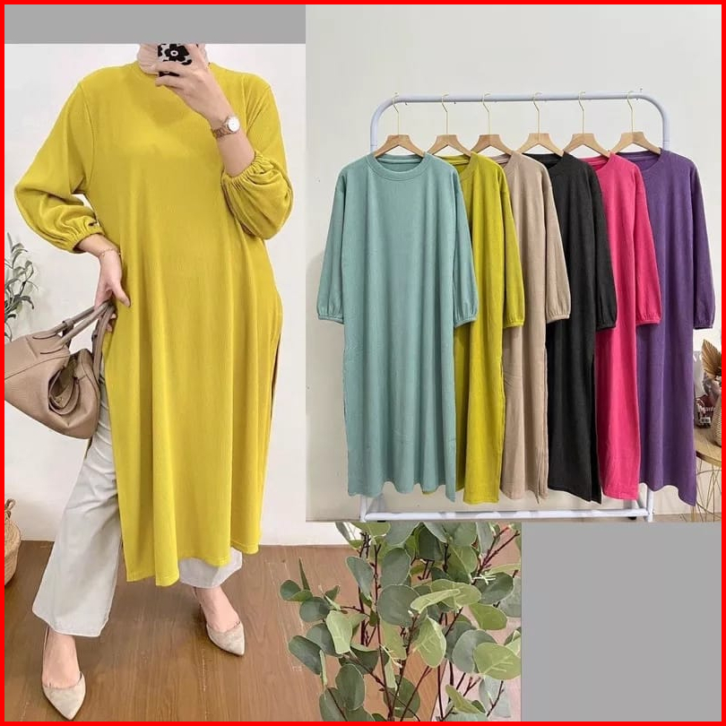 Brnj Tunik Knit Rajut Premium Atasan Wanita Muslimah Terbaru