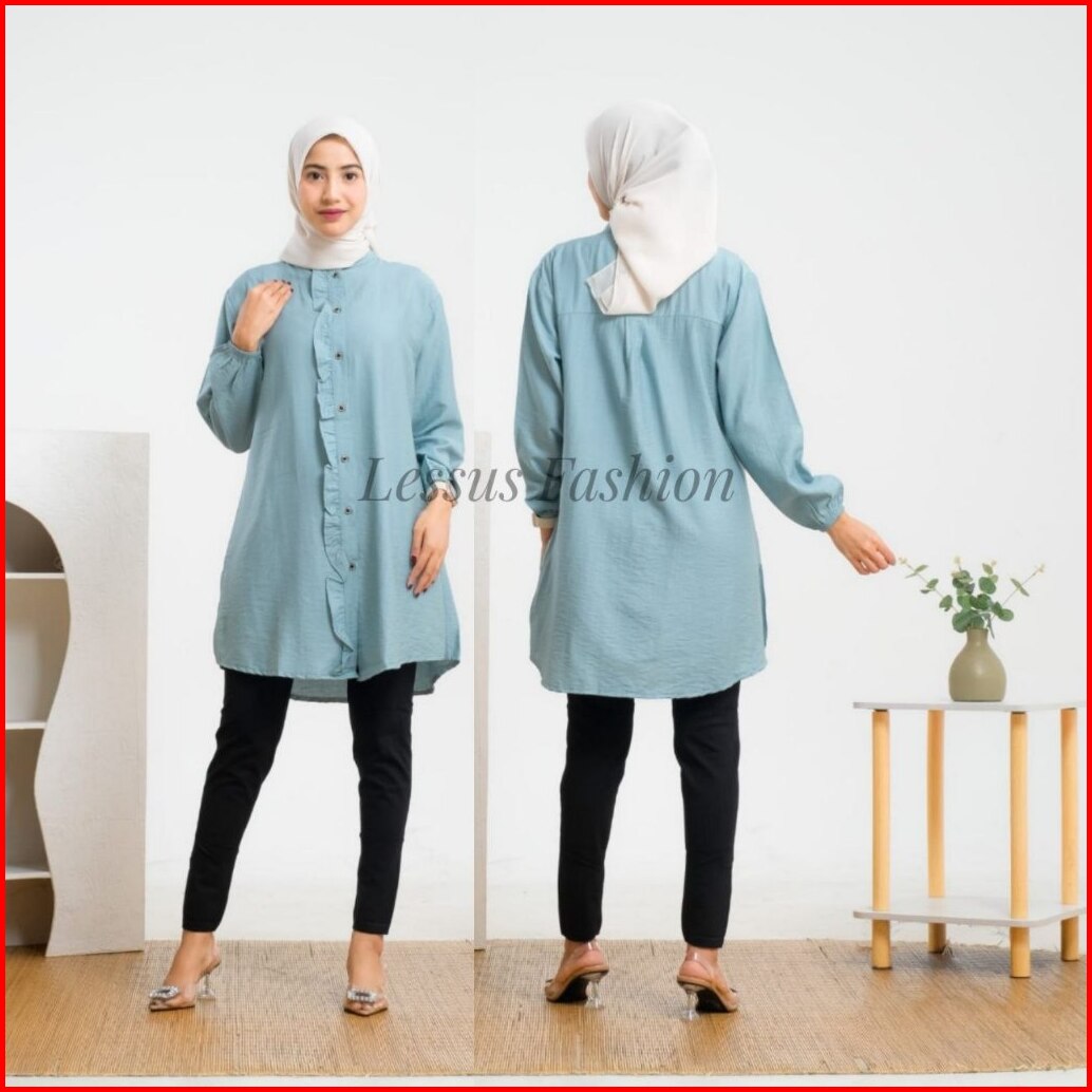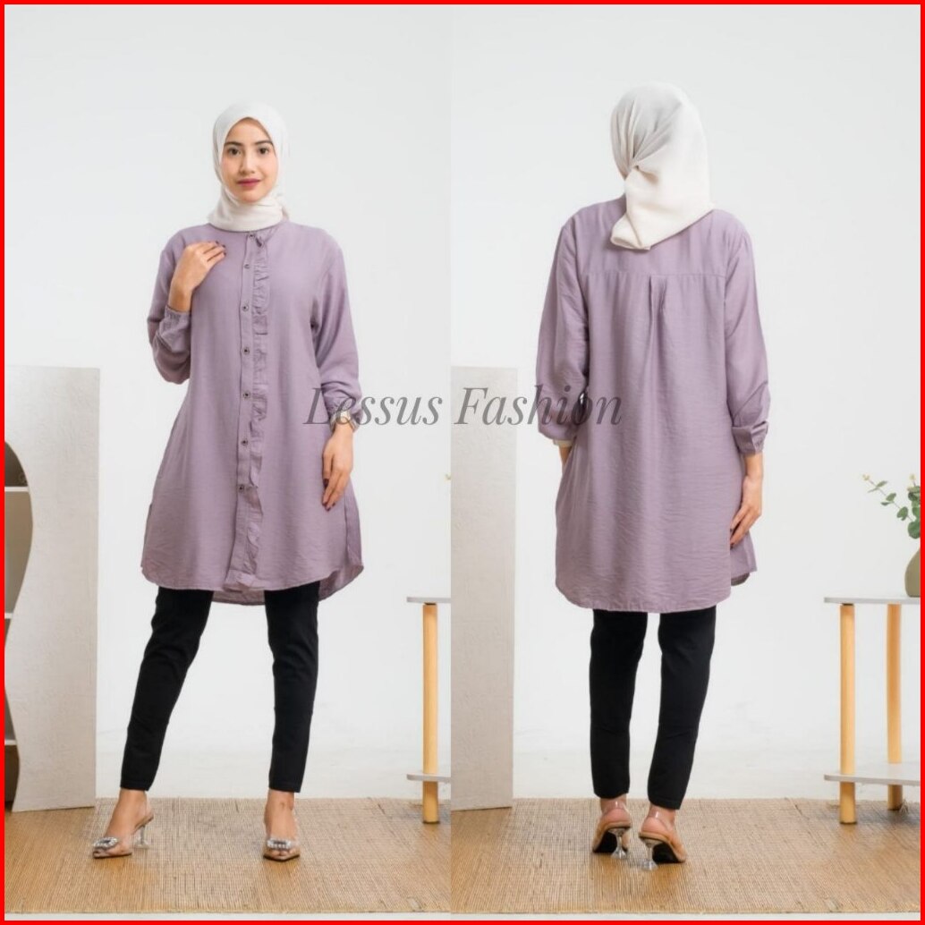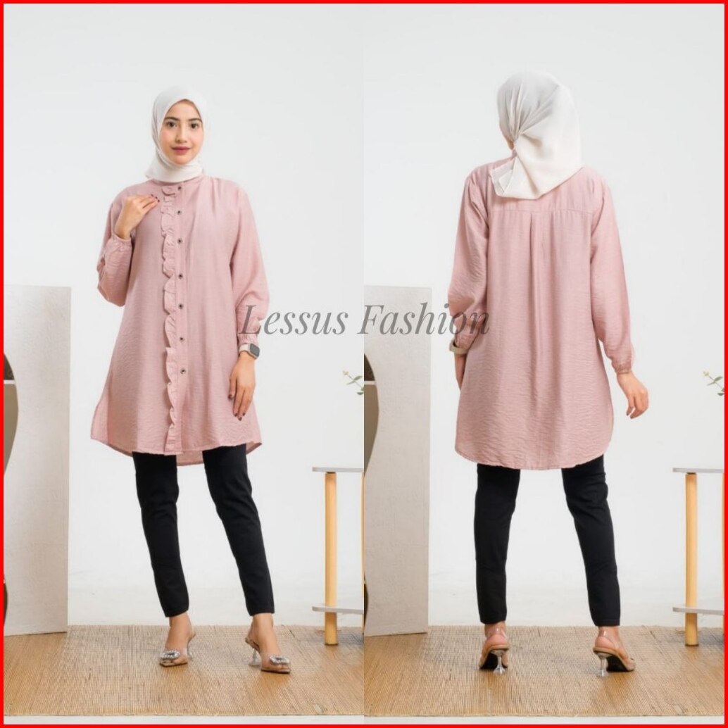 Shakira Tunik Polos Pololinen Kancing Depan Kemeja Wanita Polos Tunik Pololinen