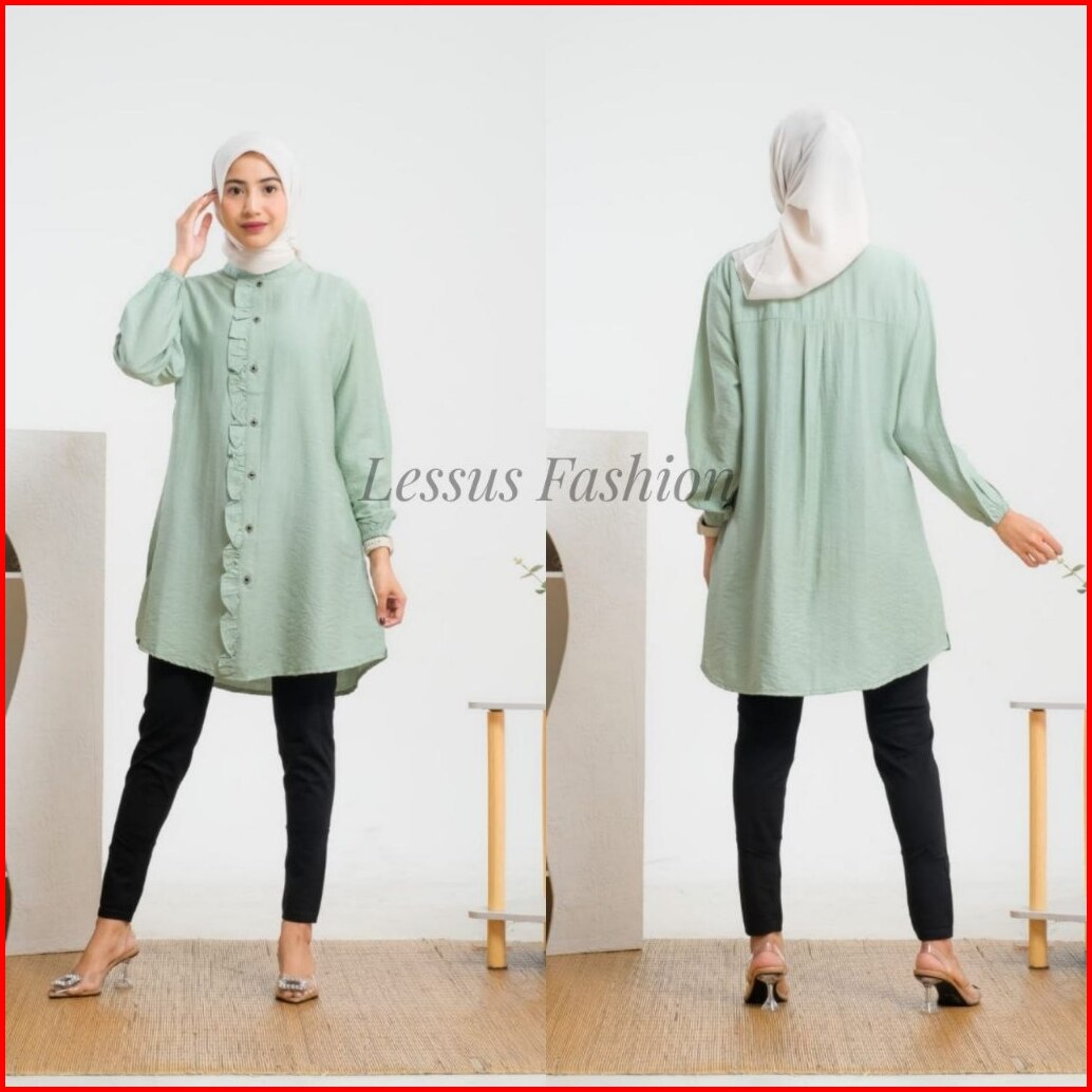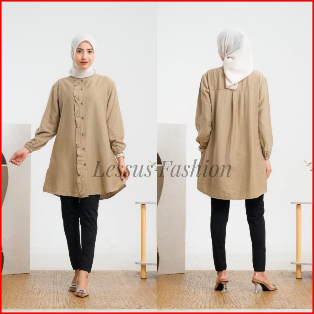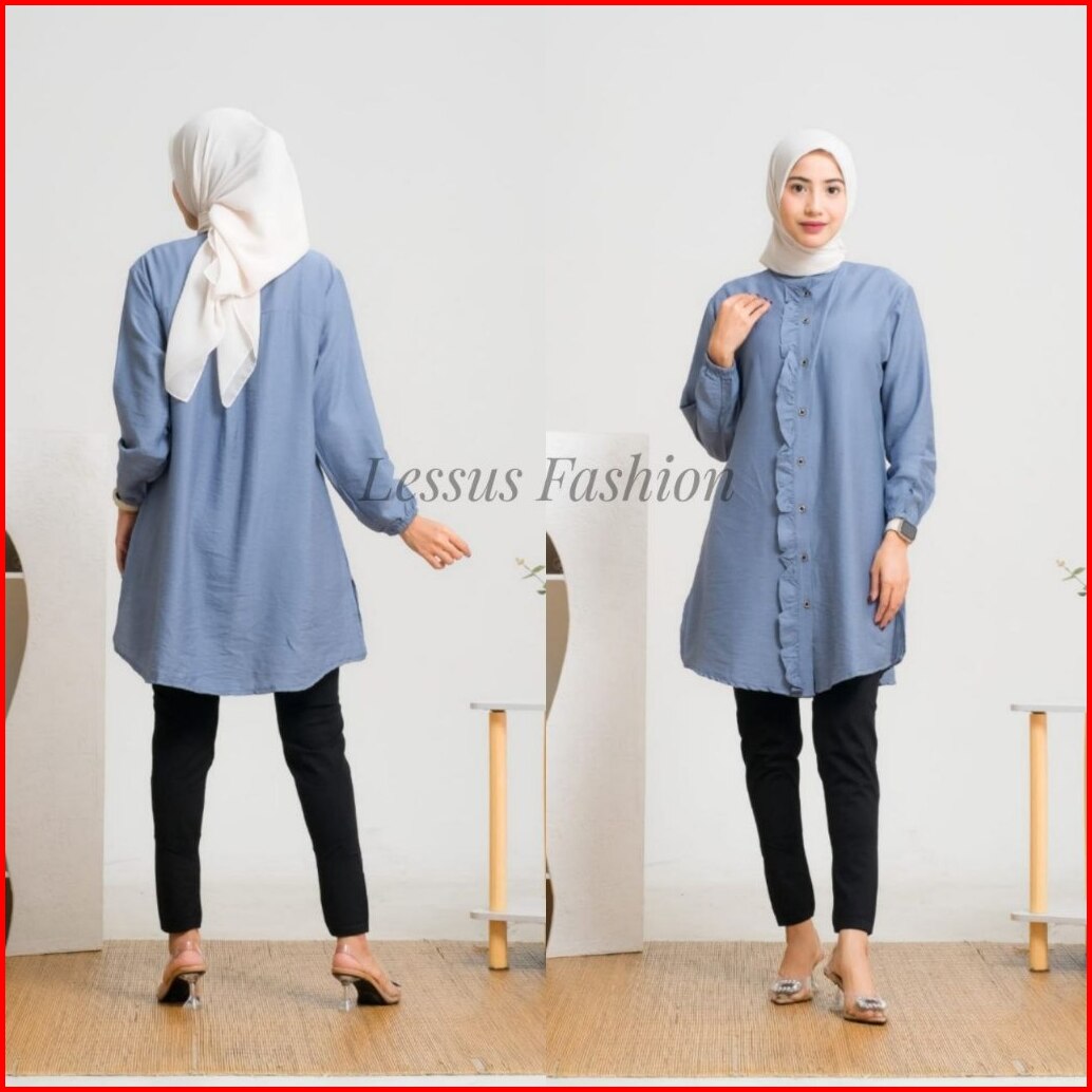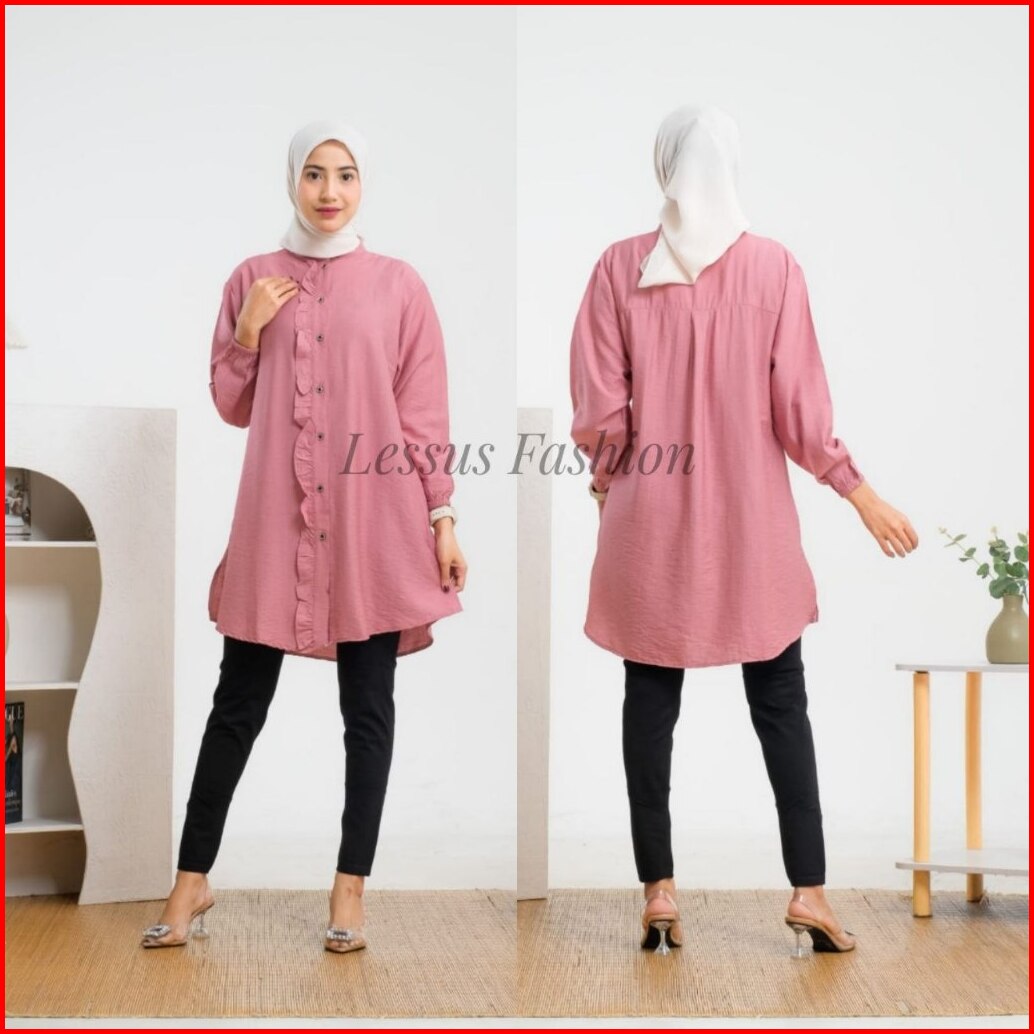 Shakira Tunik Polos Pololinen Kancing Depan Kemeja Wanita Polos Tunik Pololinen