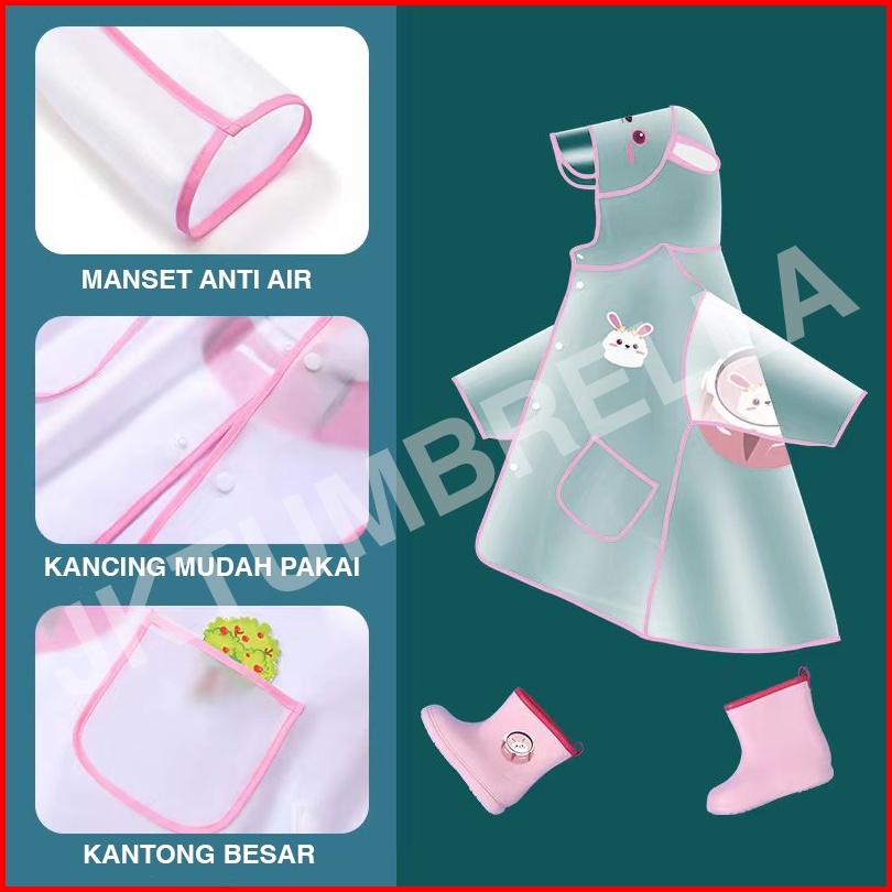 Jas Hujan Terusan Anak Motif Binatang Semi Transparan 3-6tahun Animal - 326