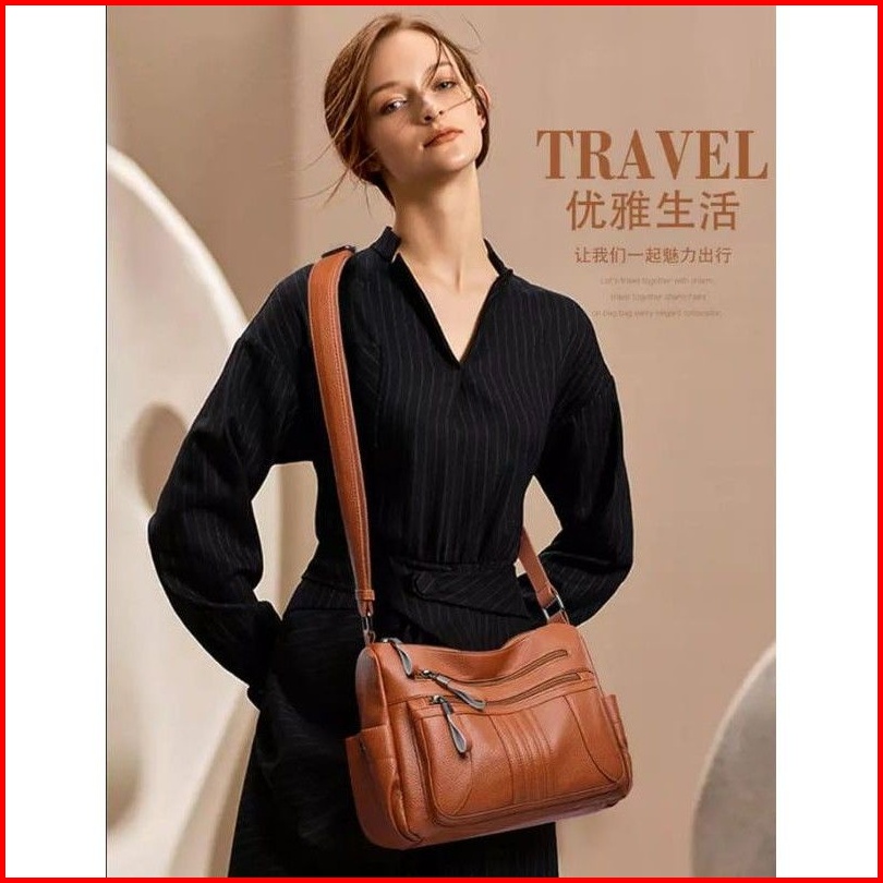 Tas Slempang Ohnokin Tas Wanita Tas Kulit Tas Bahu Multi-lapisan Tas Selempang Tas Kekinian