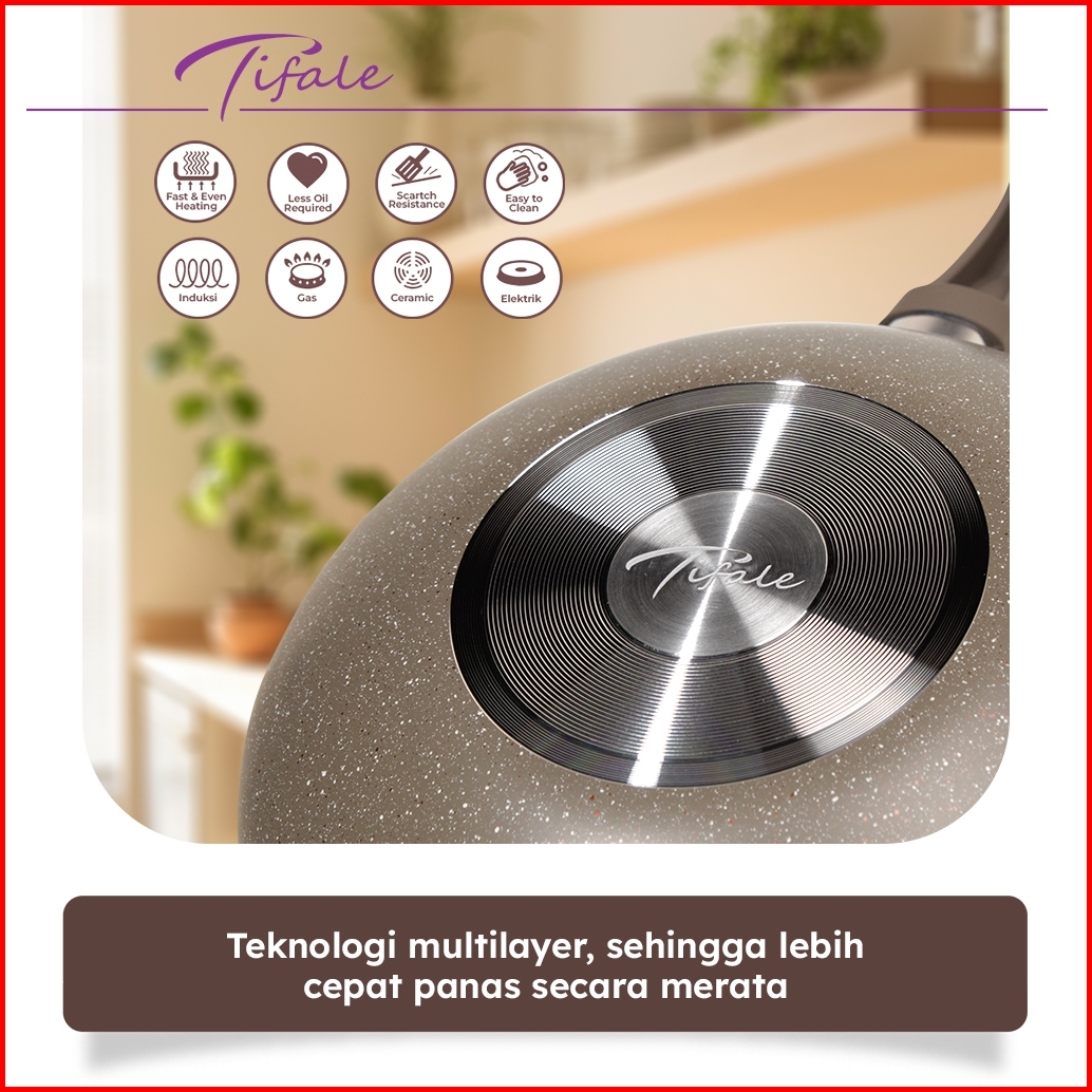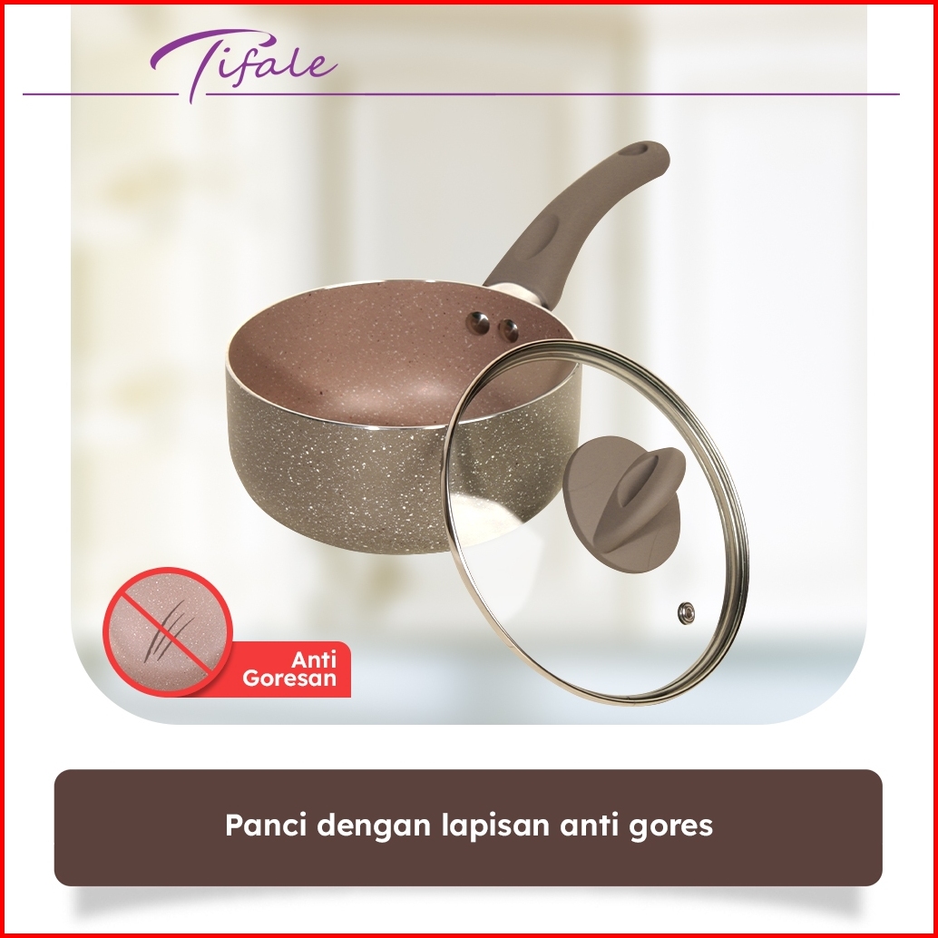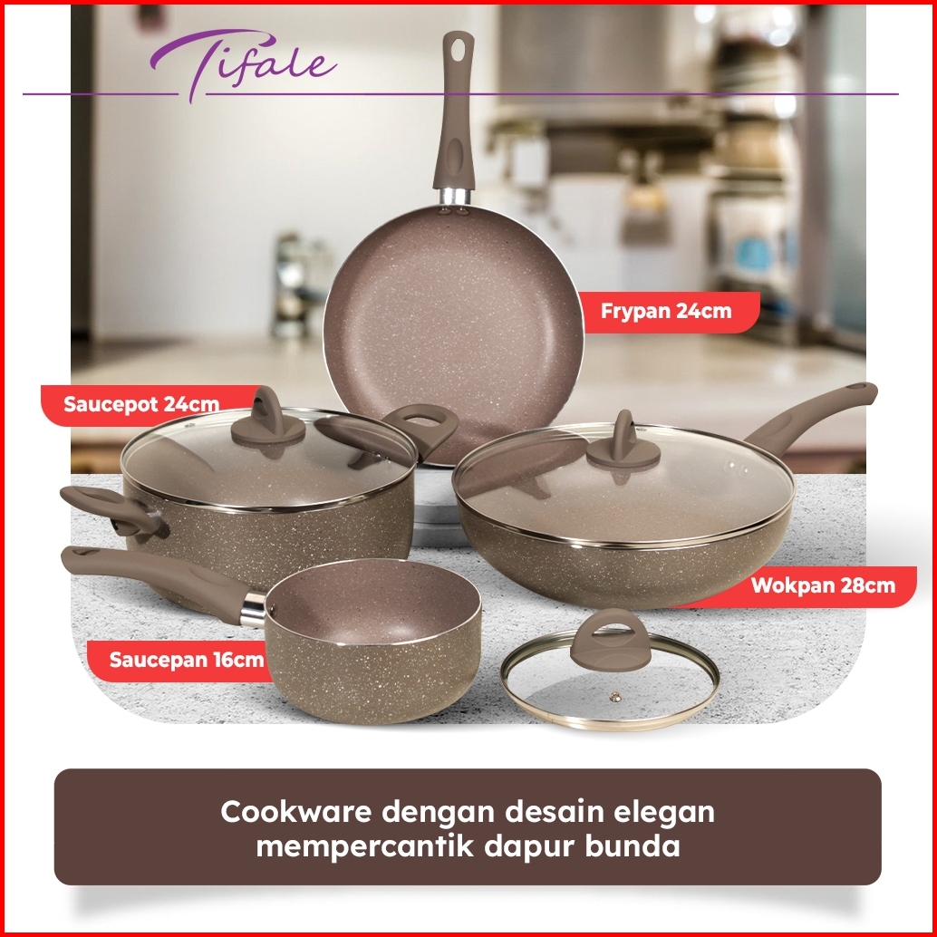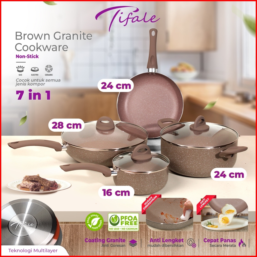 Tifale Brown Granite Antilengket Peralatan Masak Dapur 7pcs Untuk Semua Kompor Panci Wajan Penggorengan Granit Coklat An