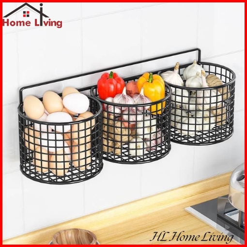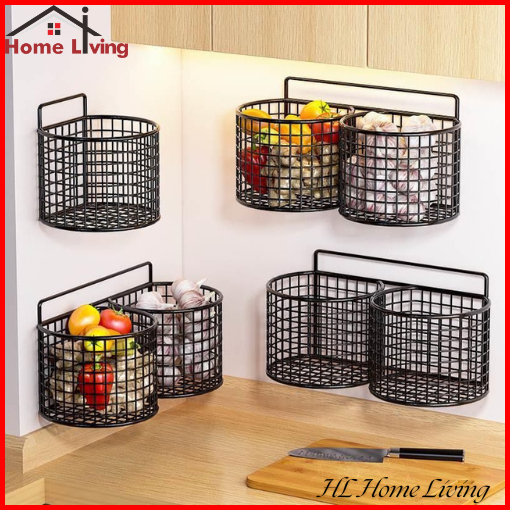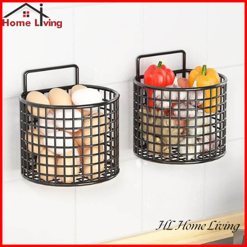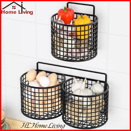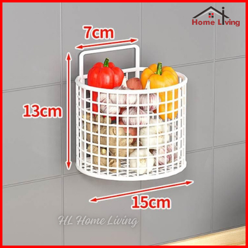 Hl Rak Keranjang Bulat Tempel Dinding Rak Keranjang Bawang Tempat Penyimpanan Bumbu Dapur