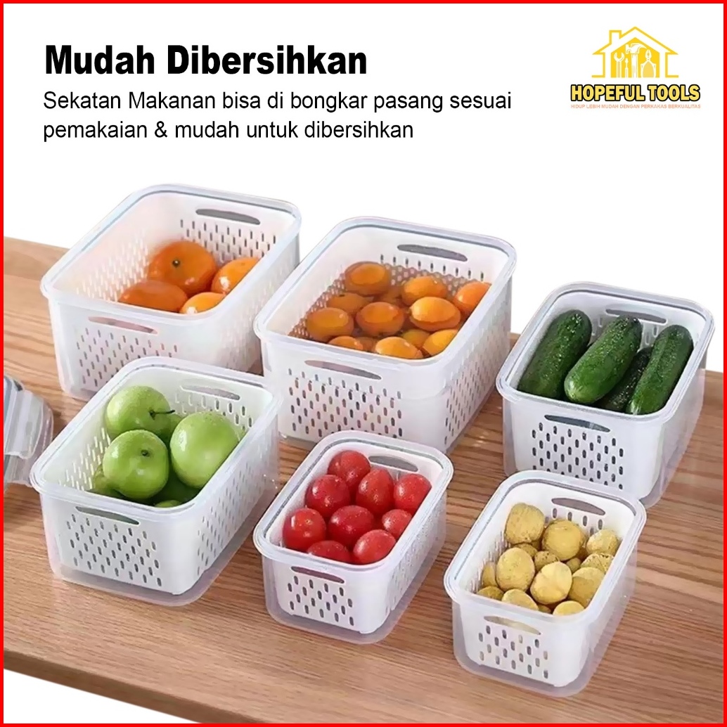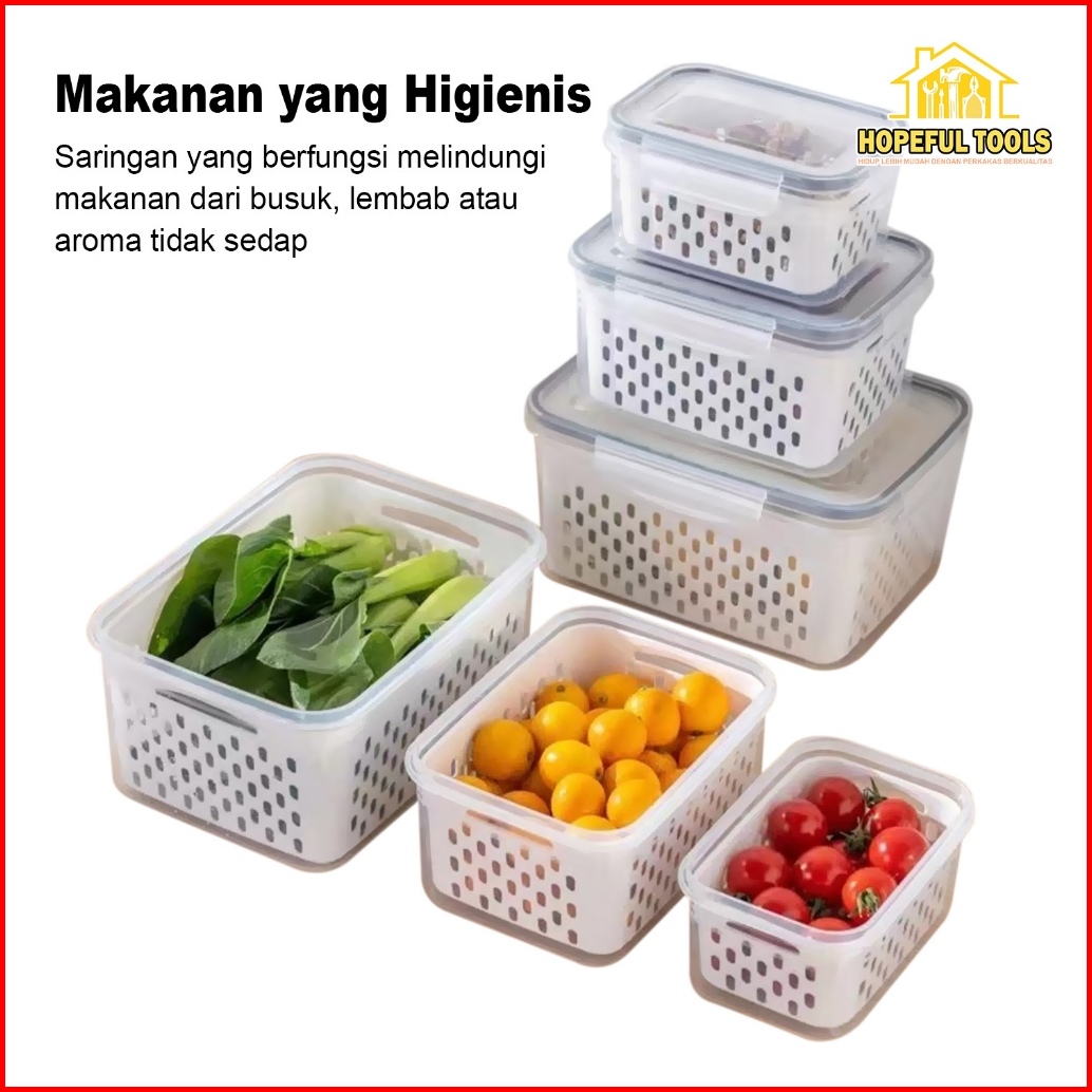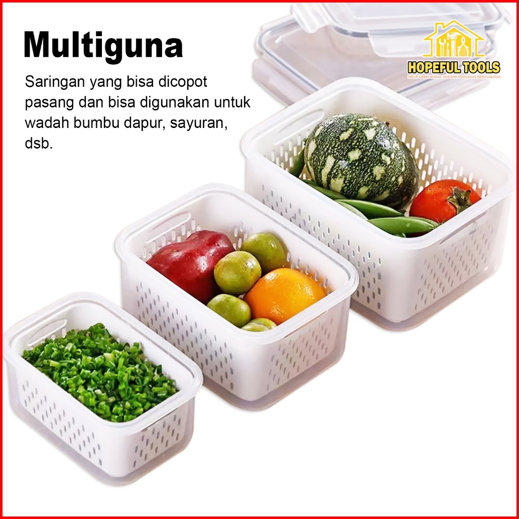 Hopefultools - Keranjang Saringan Pengering Sayur Buah Serbaguna Kotak Penyimpanan Multifungsi Kulkas Rx-a