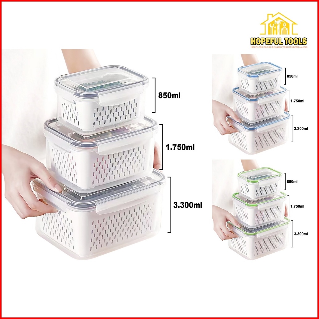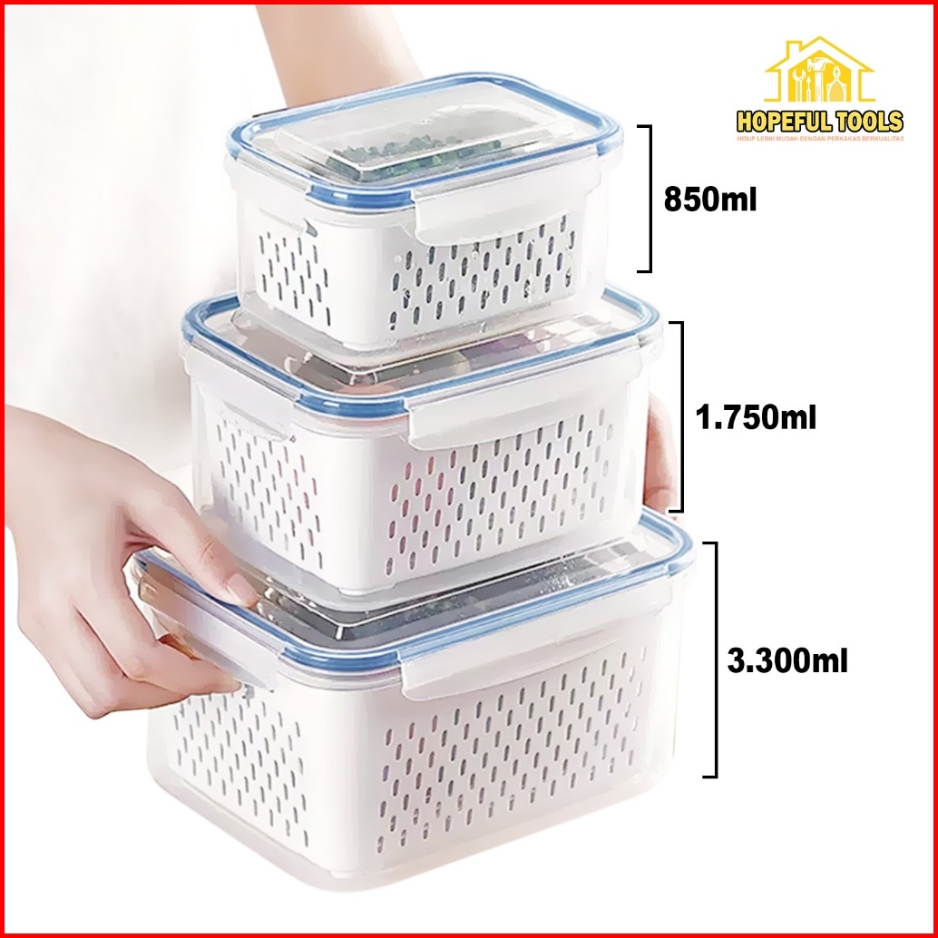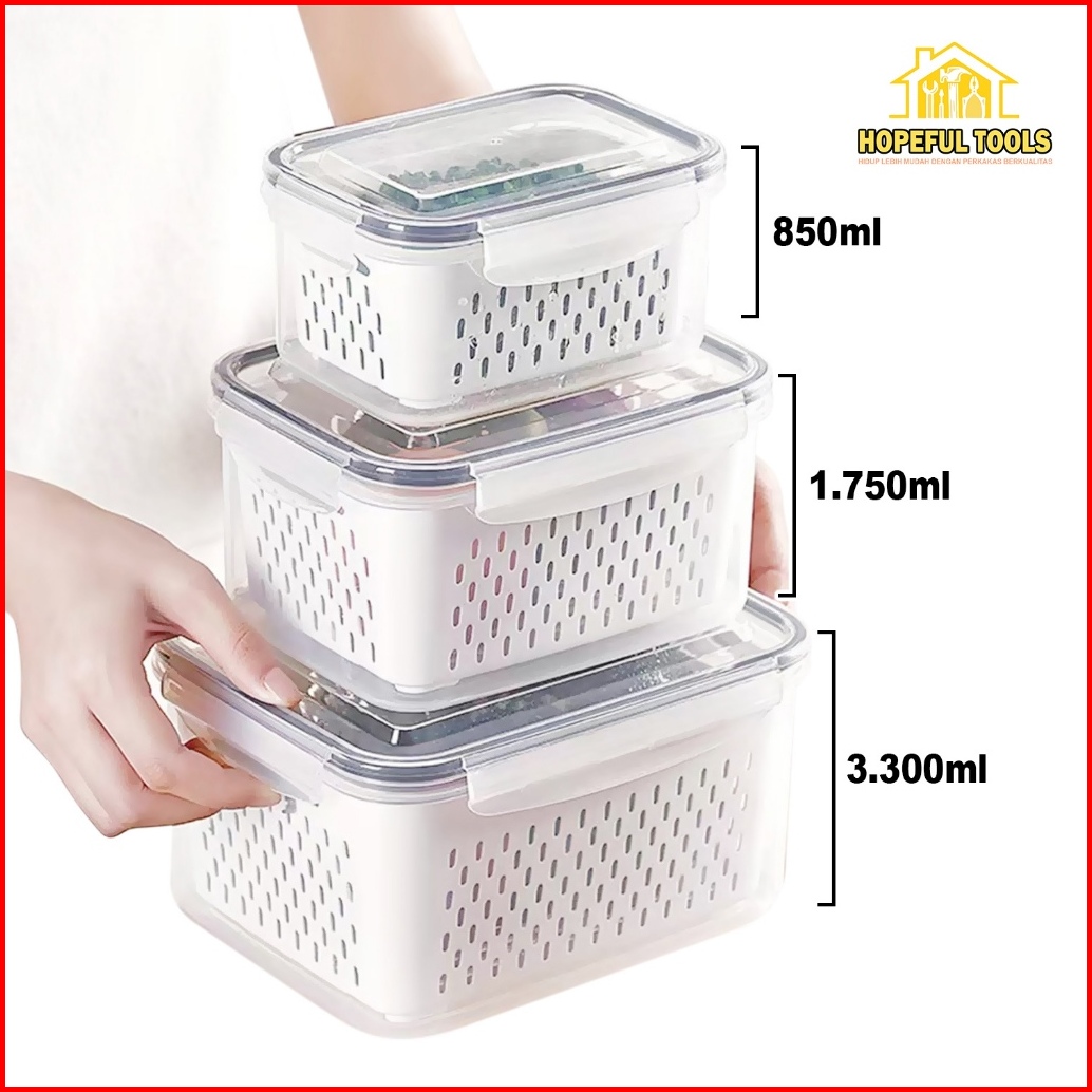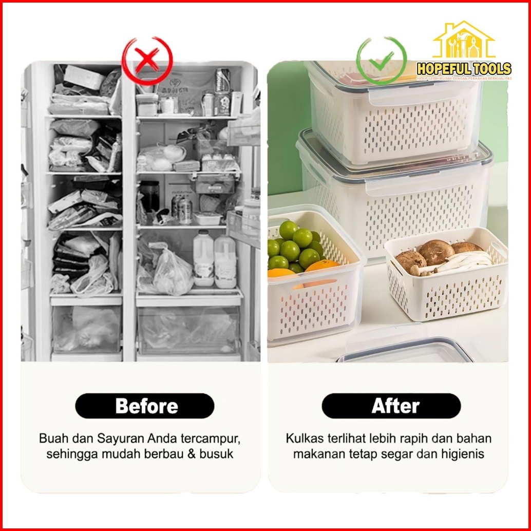 Hopefultools - Keranjang Saringan Pengering Sayur Buah Serbaguna Kotak Penyimpanan Multifungsi Kulkas Rx-a