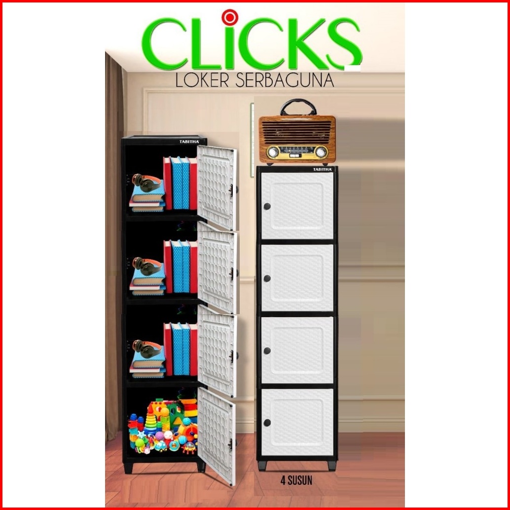 Lemari Plastik Serbaguna 1 Pintu Tabitha Clicks Tower 1 Putih Cream Warna 2 3 4 5 Susun Laci Rotan