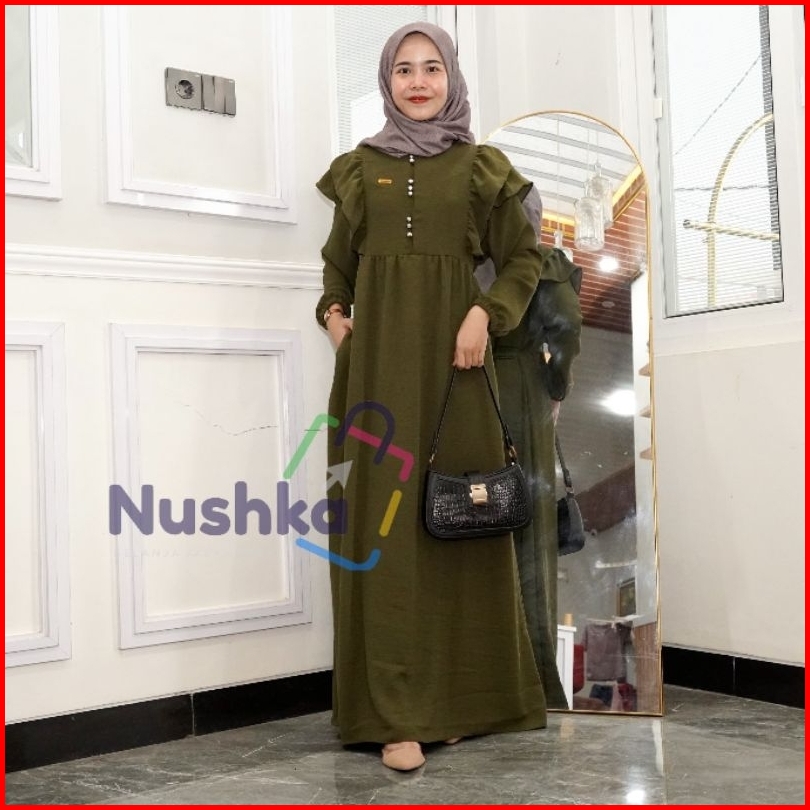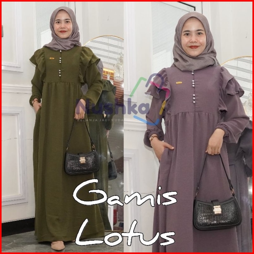 Gamis Lotus Crinkle Airflow Ld 110 Gamis Kancing Ruffle Busui Premium Quality