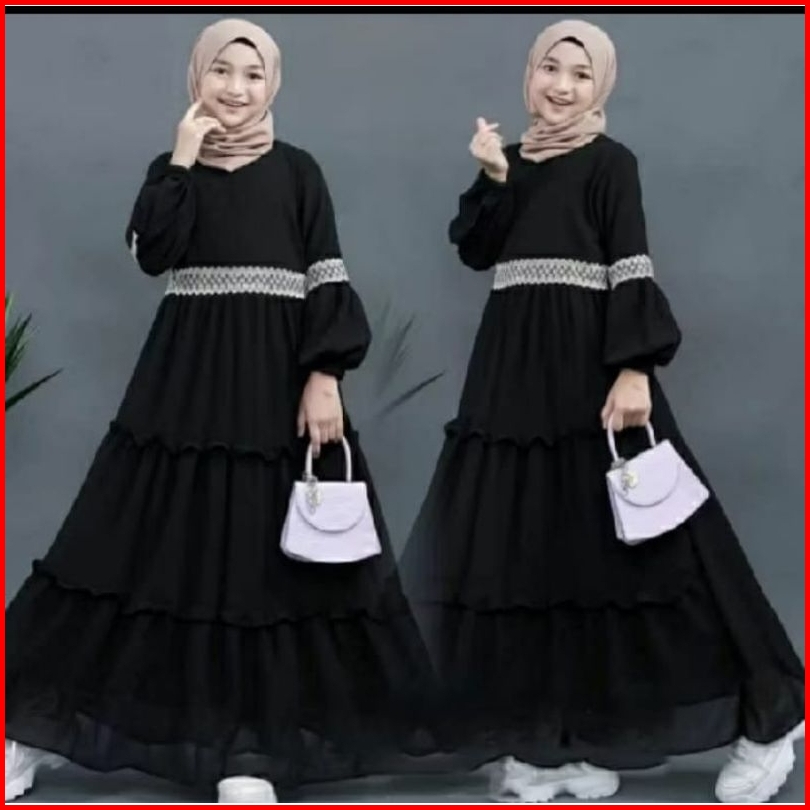 Baju Dress Anak Perempuan Gamis Busana Muslim Anak Usia 3-12 Thn Bahan Cringkel Airflow Premium.