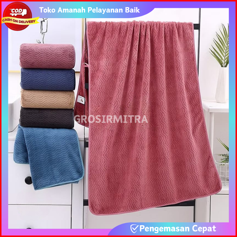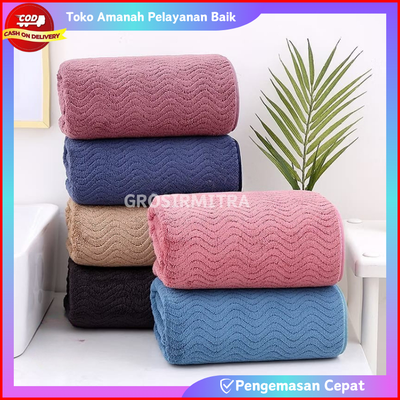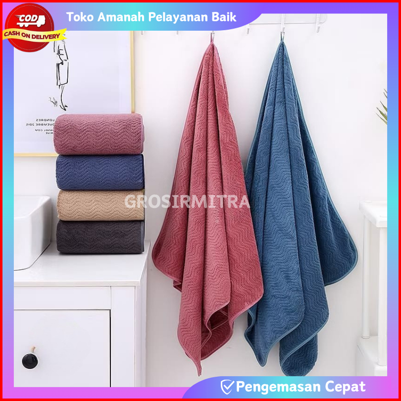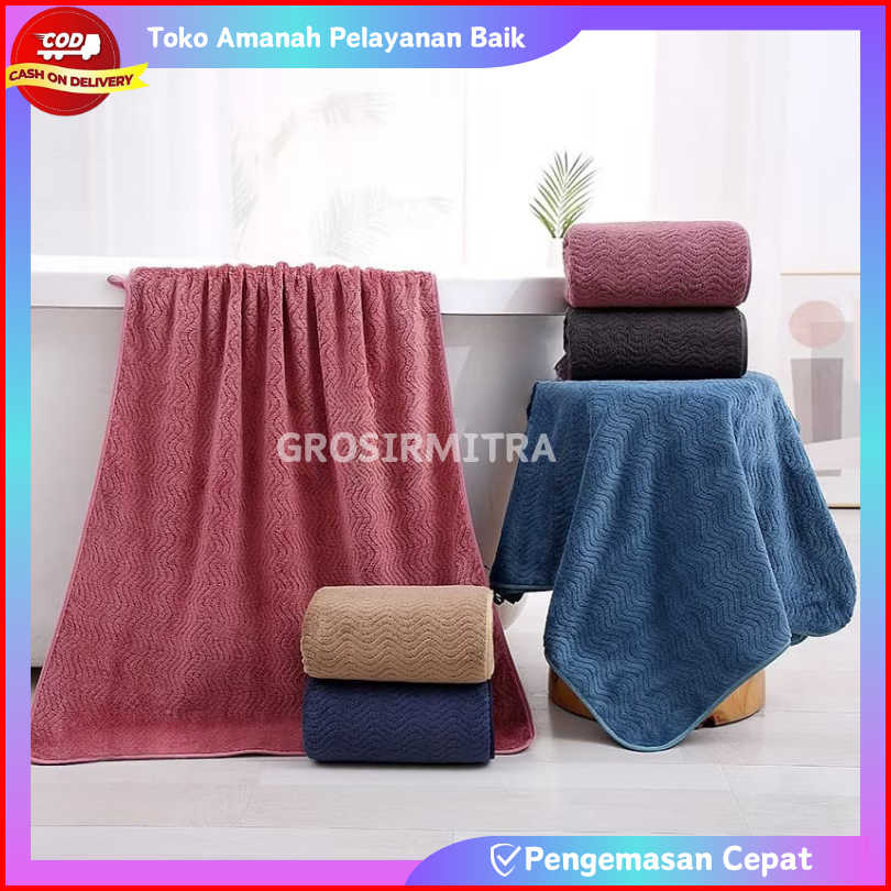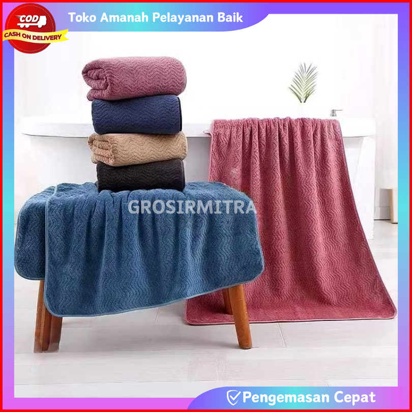 Handuk Mandi Dewasa 70x140cm Unisex Microfiber Lembut Tidak Rontok Embos Zigzag Elora