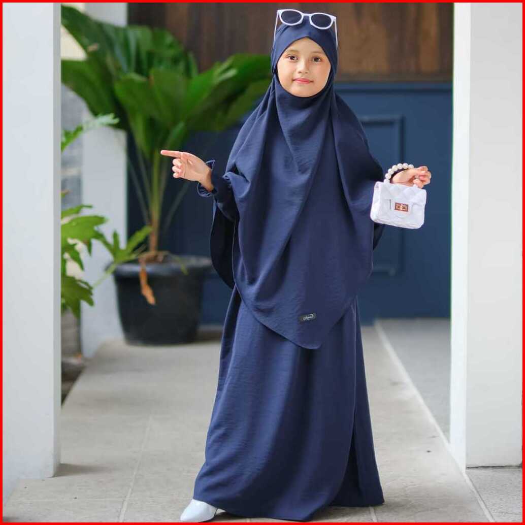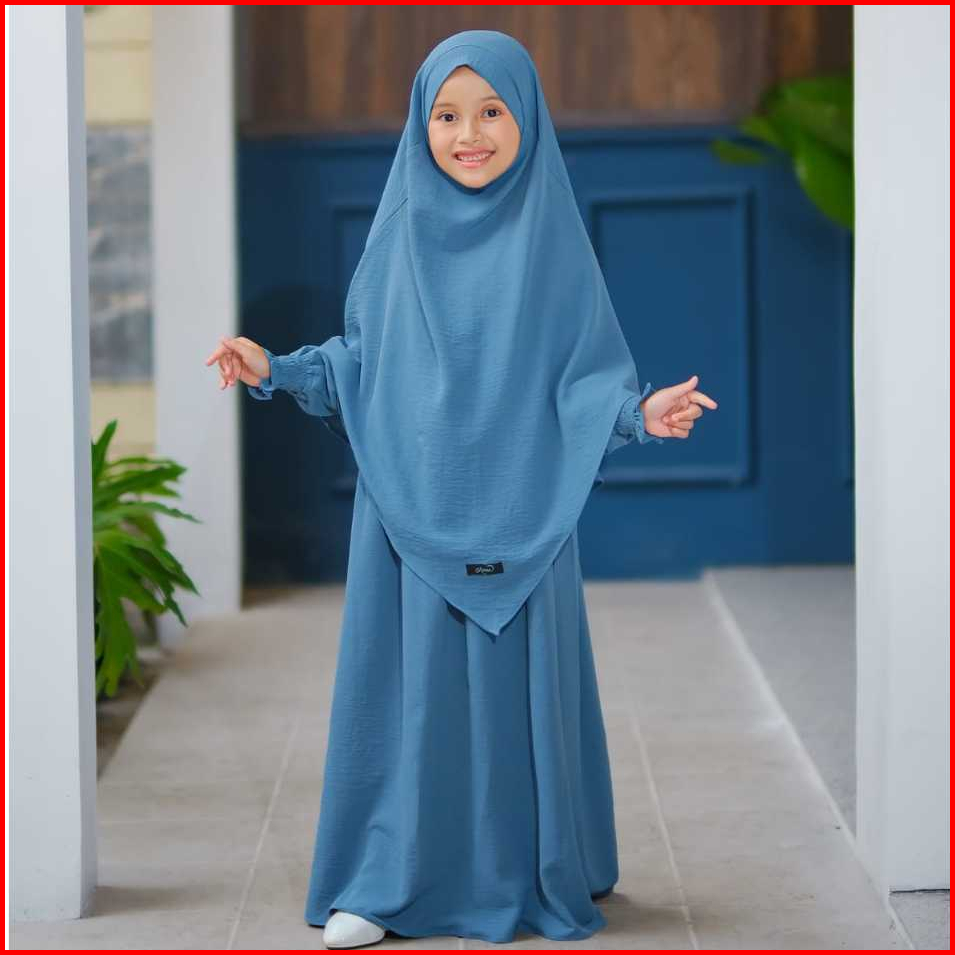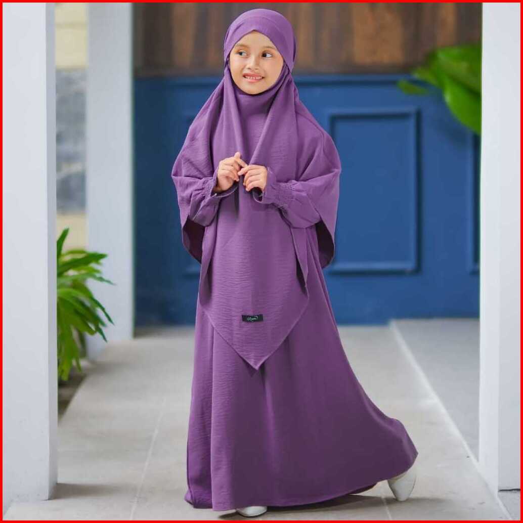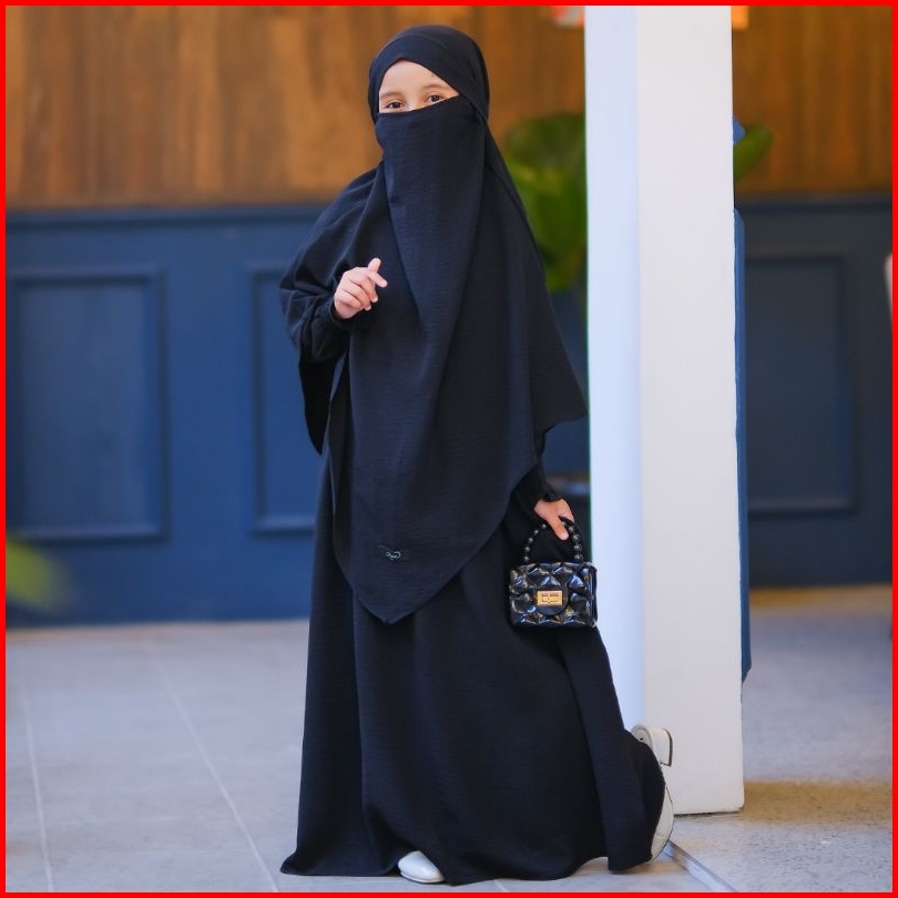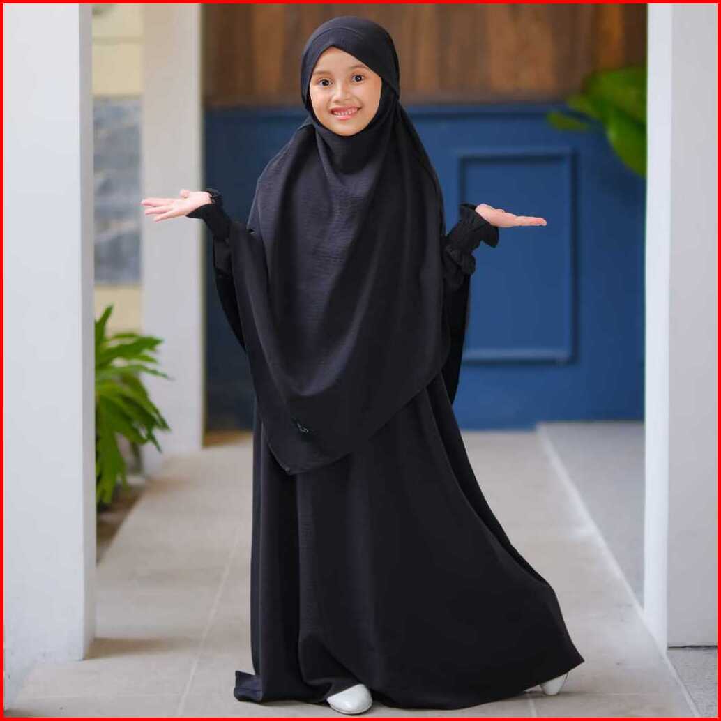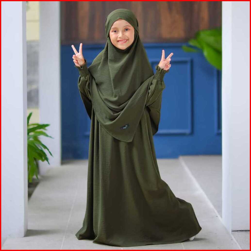 - Gamis Syar I Muslimah Anak French Khimar Cadar Menyatu Anti Uv Usia 3-14 Tahun