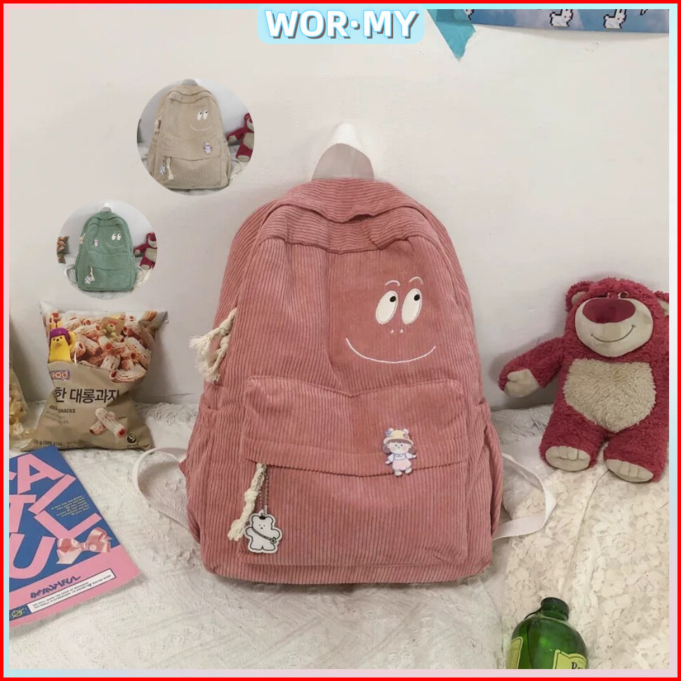 Wor Mybag Tas Ransel Wanita Corduroy Cute Korean School Backpack Perempuan Trendy Corduroy Cute Korean Fashion Bag Backp