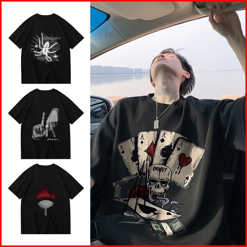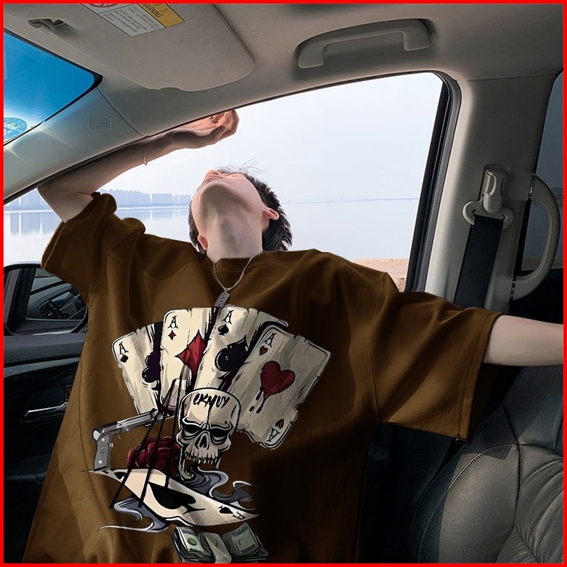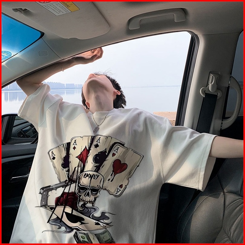 Auzy Kaos Pria Vintage Skull Playing Cards Dark Baju Distro Original 100 Retro Style Tshirt Longgar Kaos Import