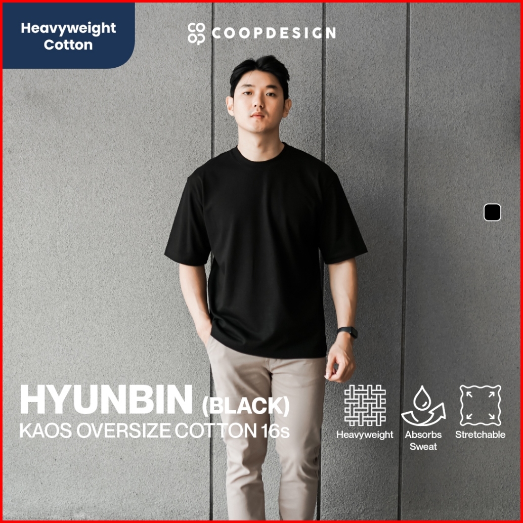 Coop Design - Hyunbin Kaos Polos Gelap Oversize Heavyweight Cotton 16s Baju Unisex Wanita Pria T-shirt Black Hitam