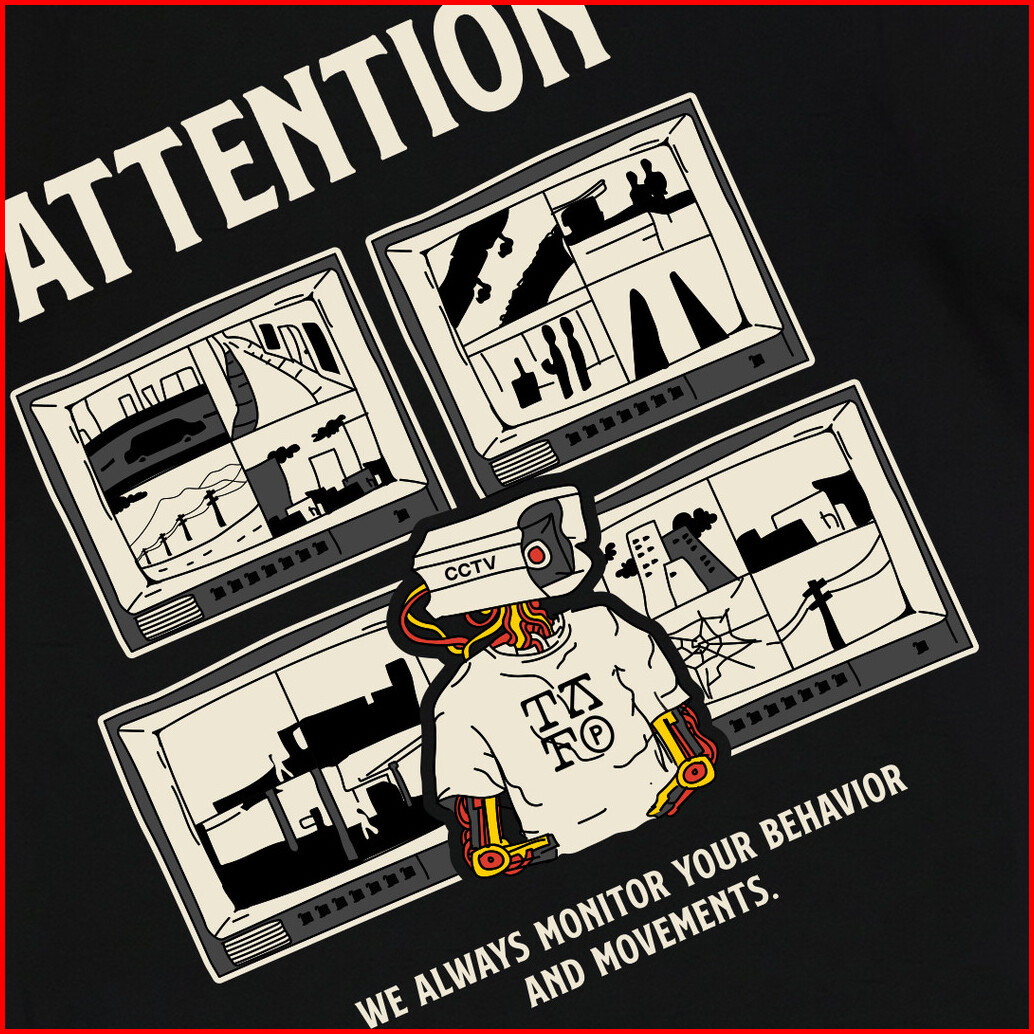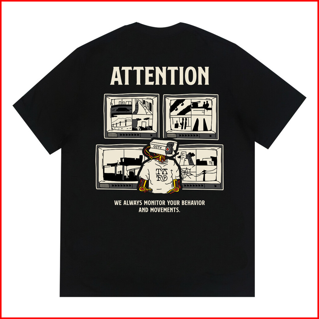 Predecessors Taf T-shirt Kaos Grafis Lengan Pendek Unisex Reguler Tee Attention Hitam