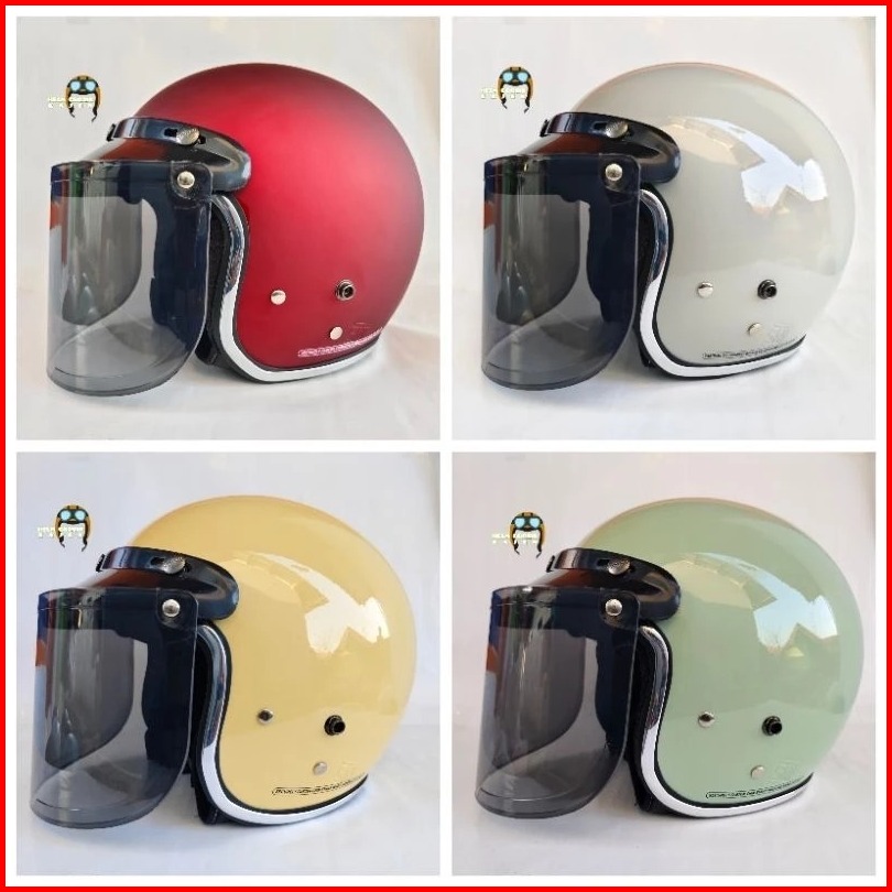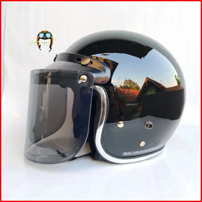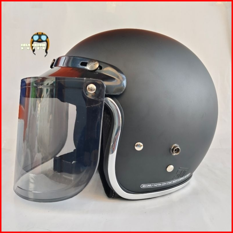Lc Helm Bogo Dewasa No1 Kaca Datar Hitam - Helm Bogo Retro Dewasa Full Leher Sni 1 Pria Wanita