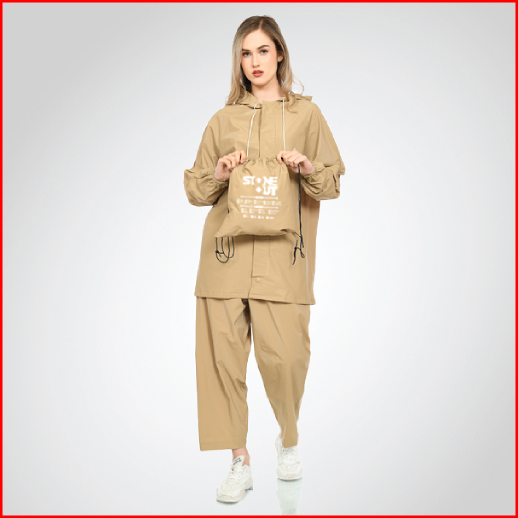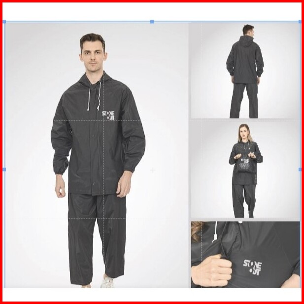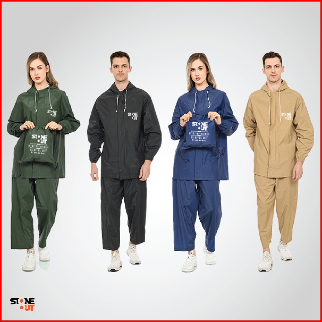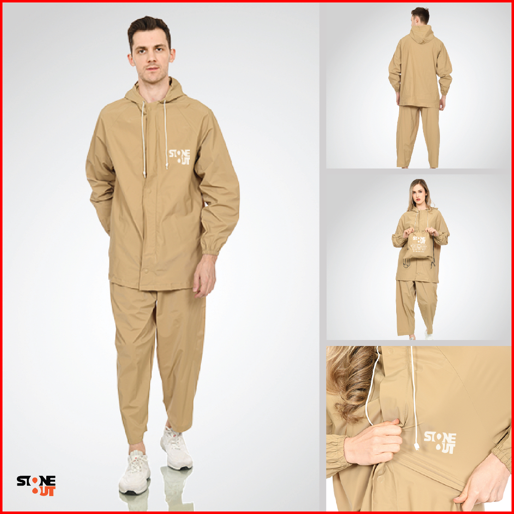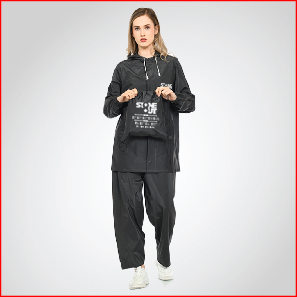 Jas Hujan Elastis Sistem Press Anti Sobek Anti Rembes Stone Out Pria Wanita Unisex Mantel Pvc