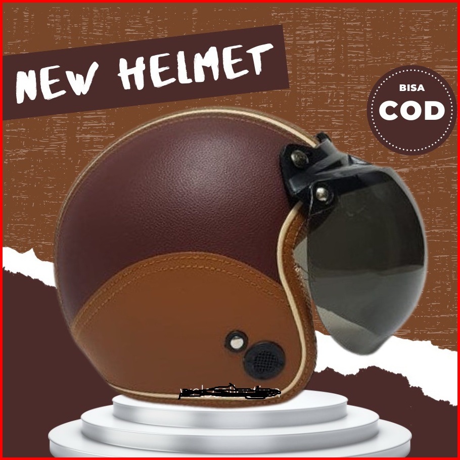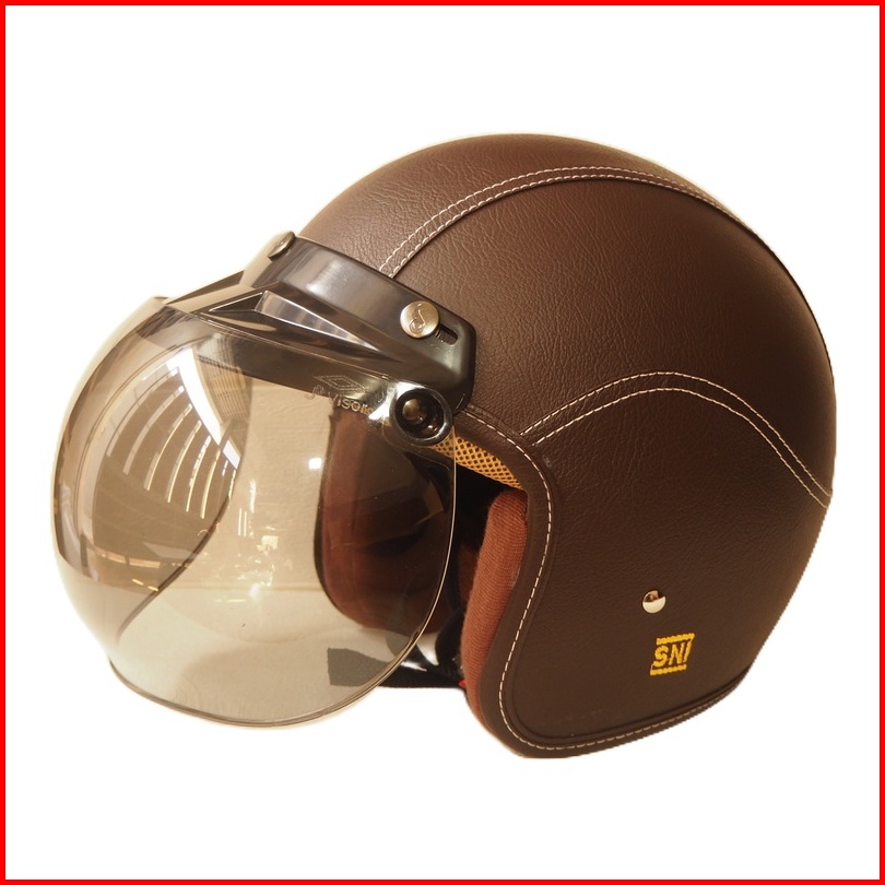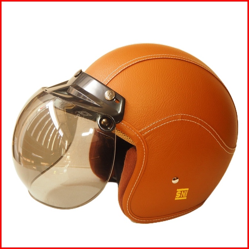 Helm Bogo Classic Bahan Kulit Sintetis Motif Jeruk Sni Dewasa Pria Dan Wanita Boggo Retro Klasik Glossy Kaca Datar Cembu