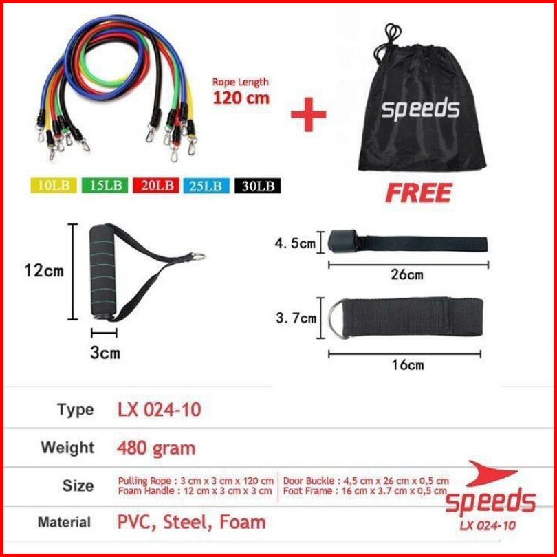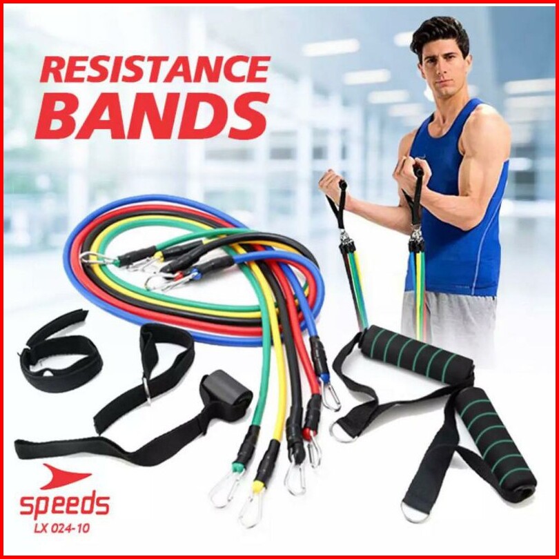 Set Resistance Band 11in1 Tali Stretching Alat Bantu Olahraga Indoor Gym Pilates Fitness Workout
