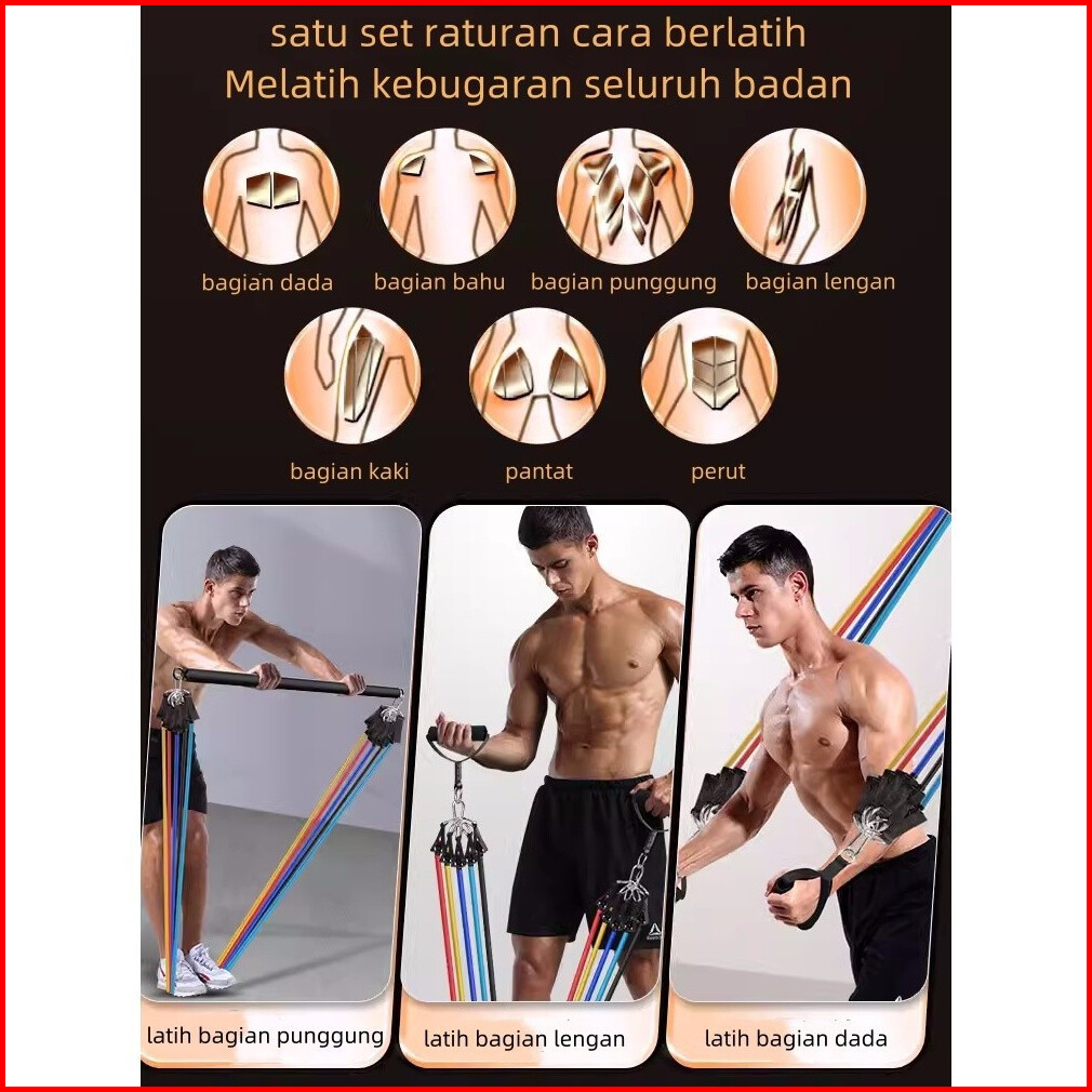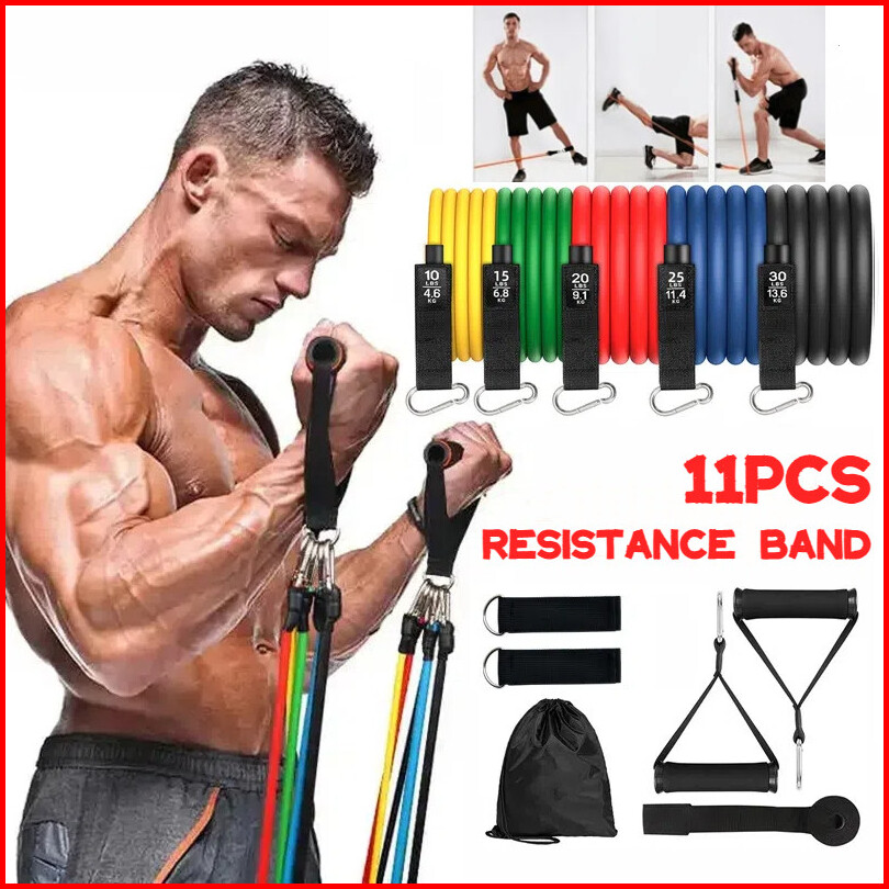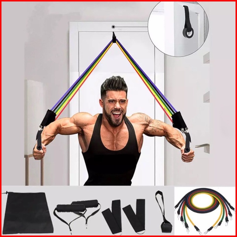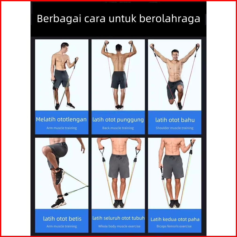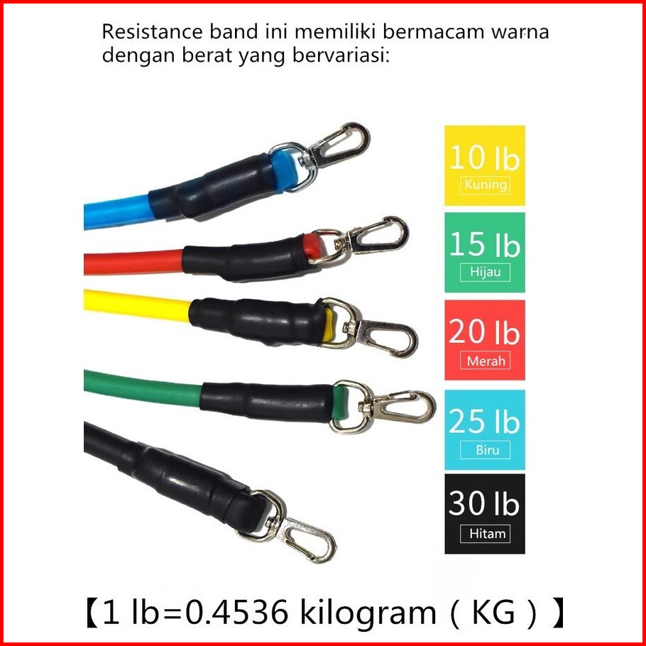 Resistance Band Set 11 Pcs Set Karet Elastis Panjang Gym Tali Alat Fitness Original