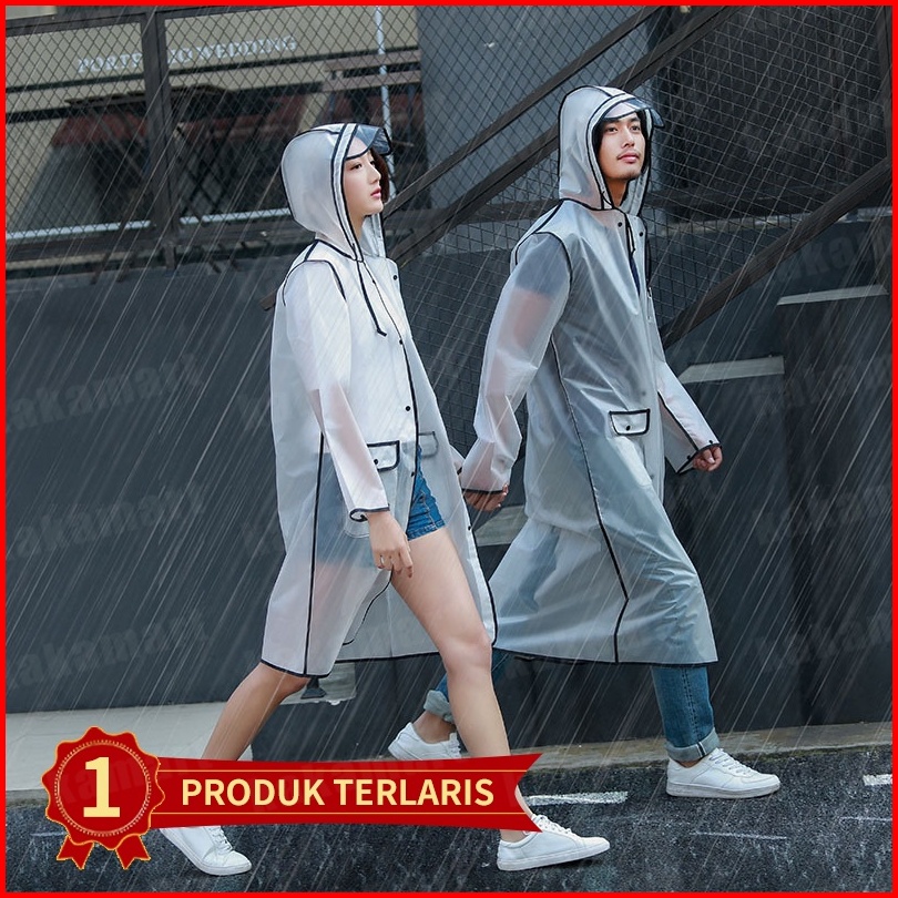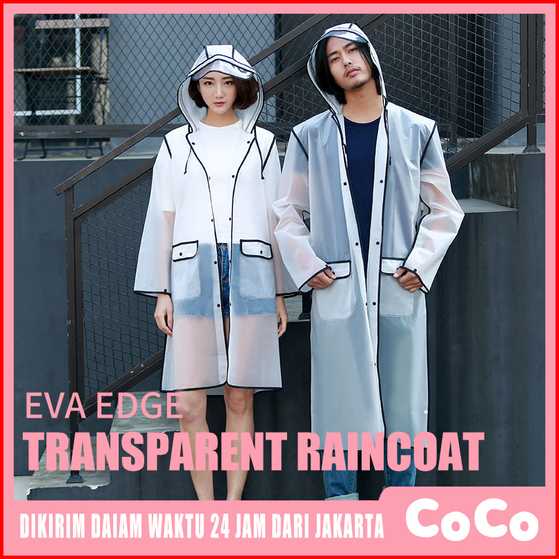 Jas Hujan Eva Fashion Raincoat Zipper Jas Hujan Dewasa Motif Transparan Jas Hujan Motor Lelaki Dan Perempuan Unisex