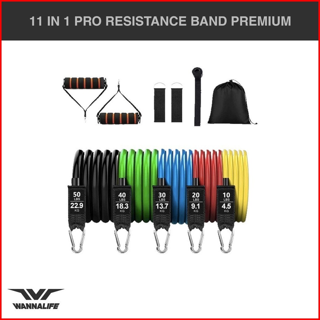 Premium Resistance Band 11 In 1 Pro Set Wannalife Biceps Triceps Fitness Gym