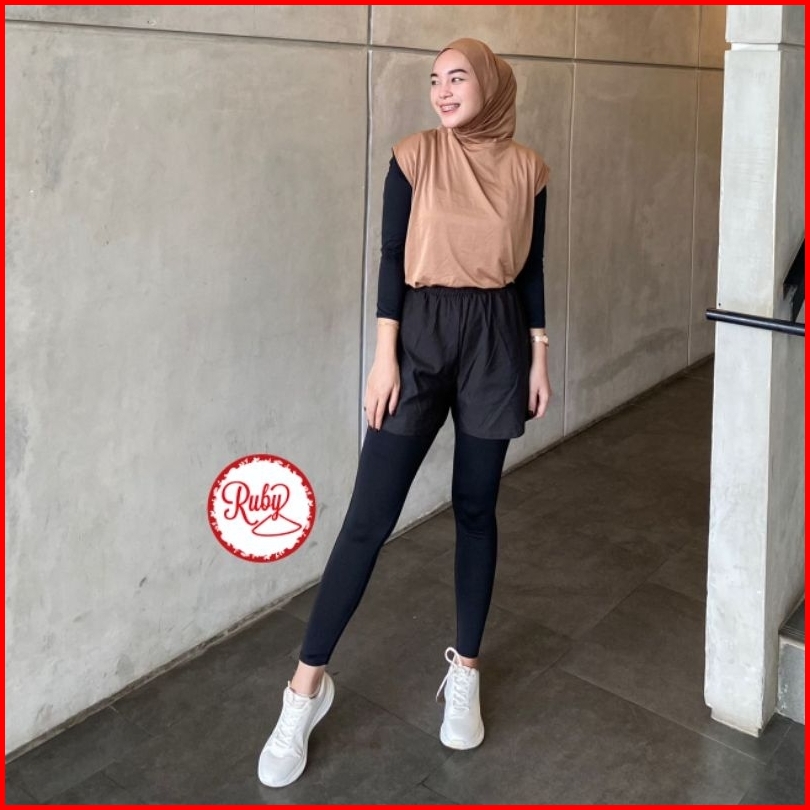 Celana Olahraga 2 In 1 Menyatu Hotpants Legging Short Pants