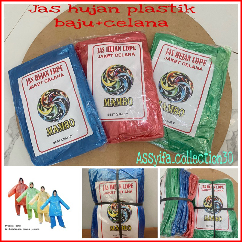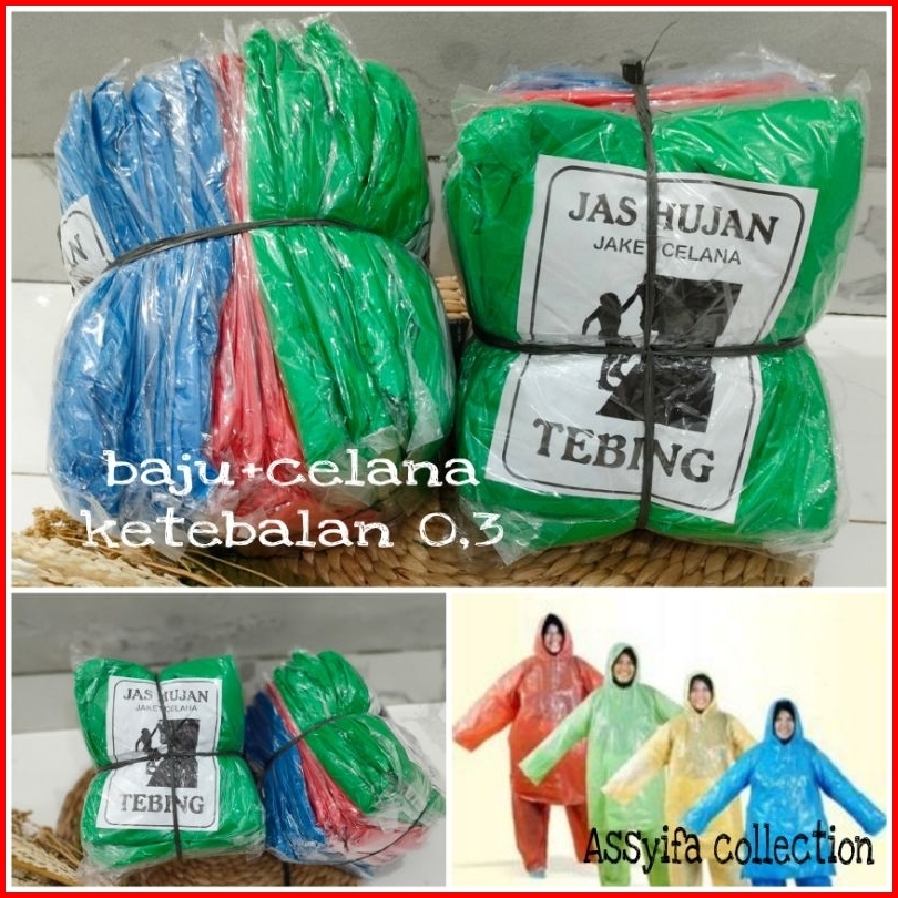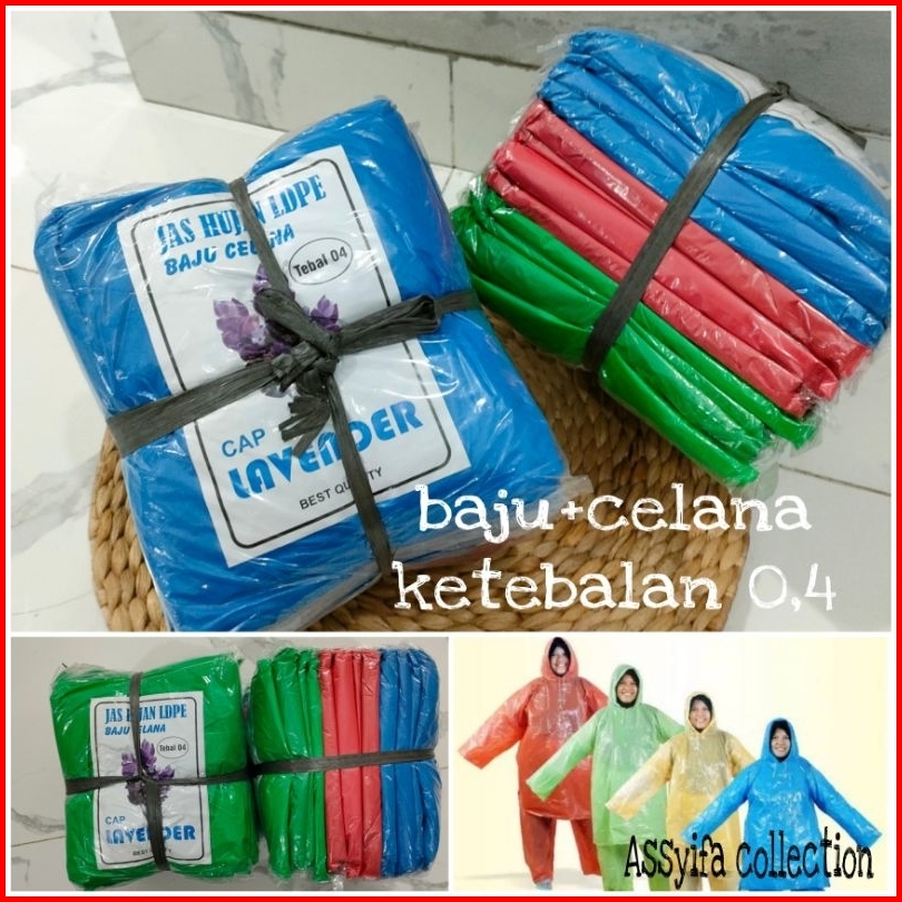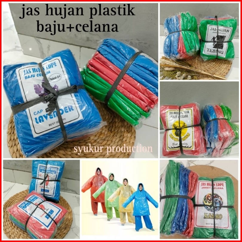 Jas Hujan Plastik Setelan Isi 12 Pcs Baju Celana