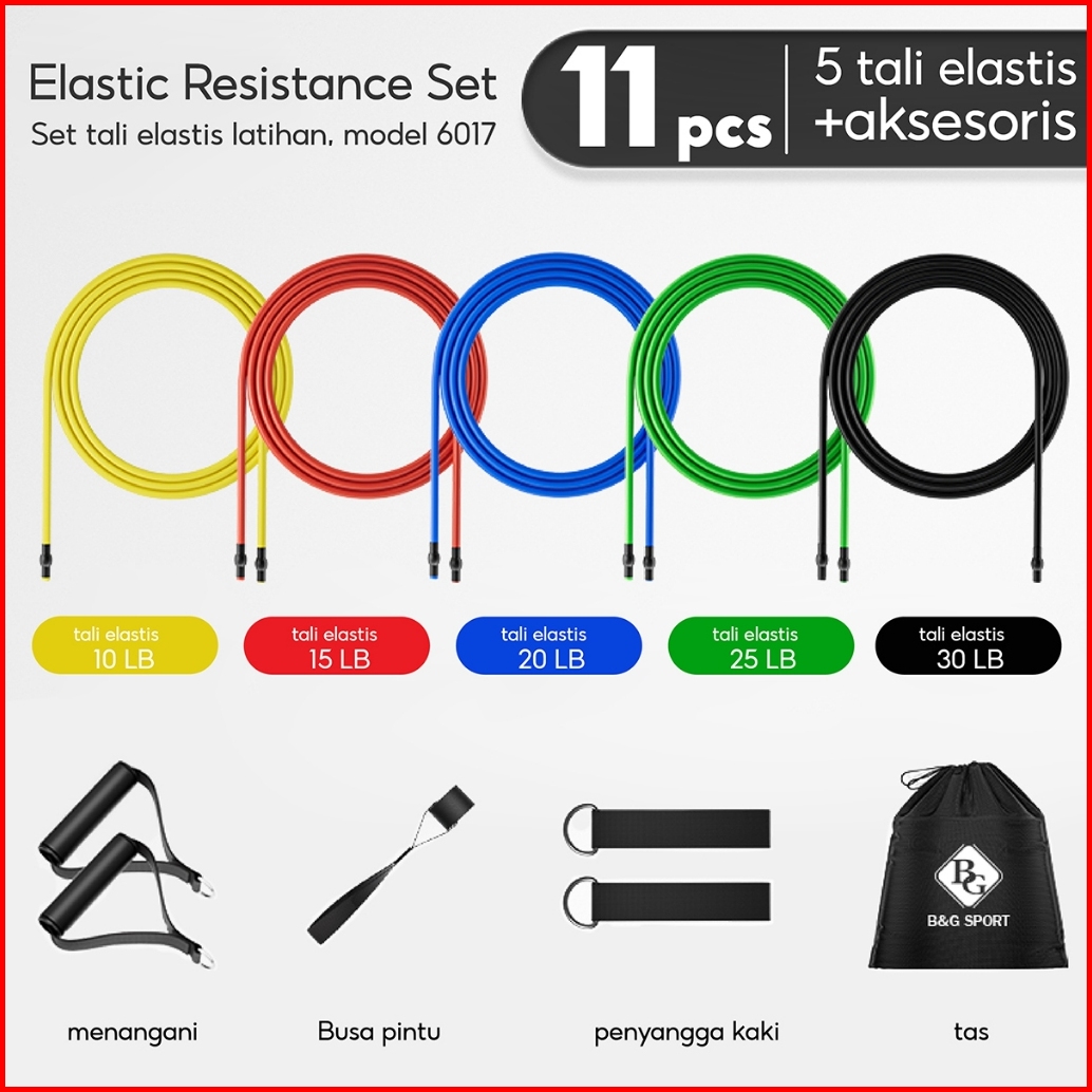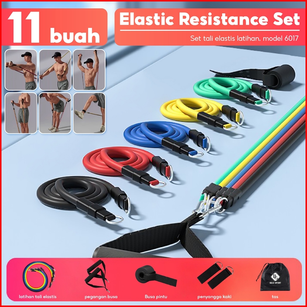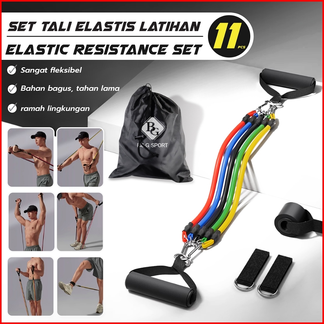 Bg Sport Resistance Bands 11 In 1 Set Tali Pembantu Fitness Gym Power Elastic Fitness Gym