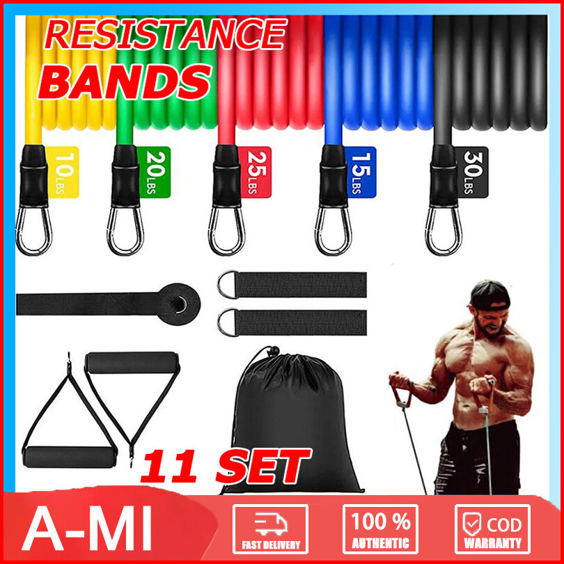10-30 Lbs Resistance Bands 11 In 1 Set Tali Pembantu Fitness Alat Fitness Gym Power