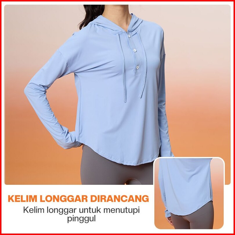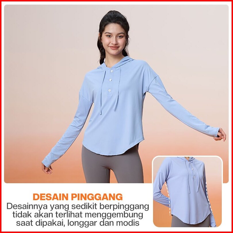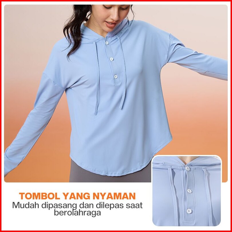 Wizi Anti Uv Atasan Olahraga Longgar Hoodie Wanita Pakaian Olahraga Lengan Panjang Upf 50