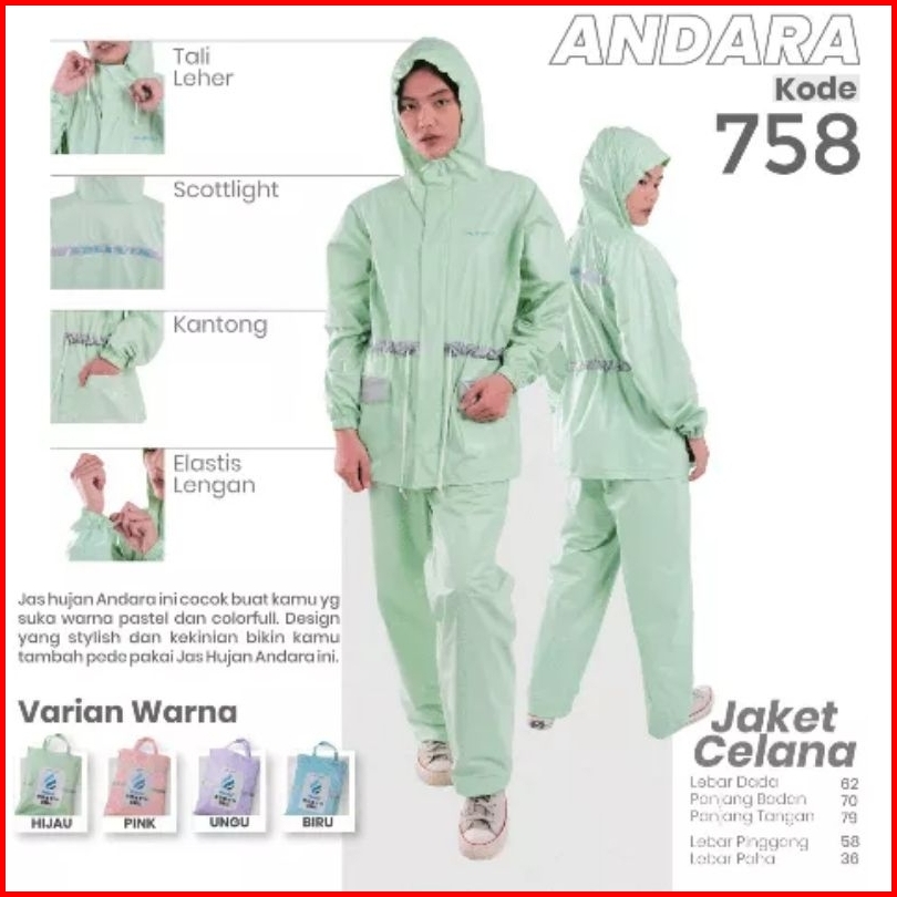 Jas Hujan Plevia Mantel Hujan Jaket Celana Andara 758 Mantol Setelan Baju Celana Andara