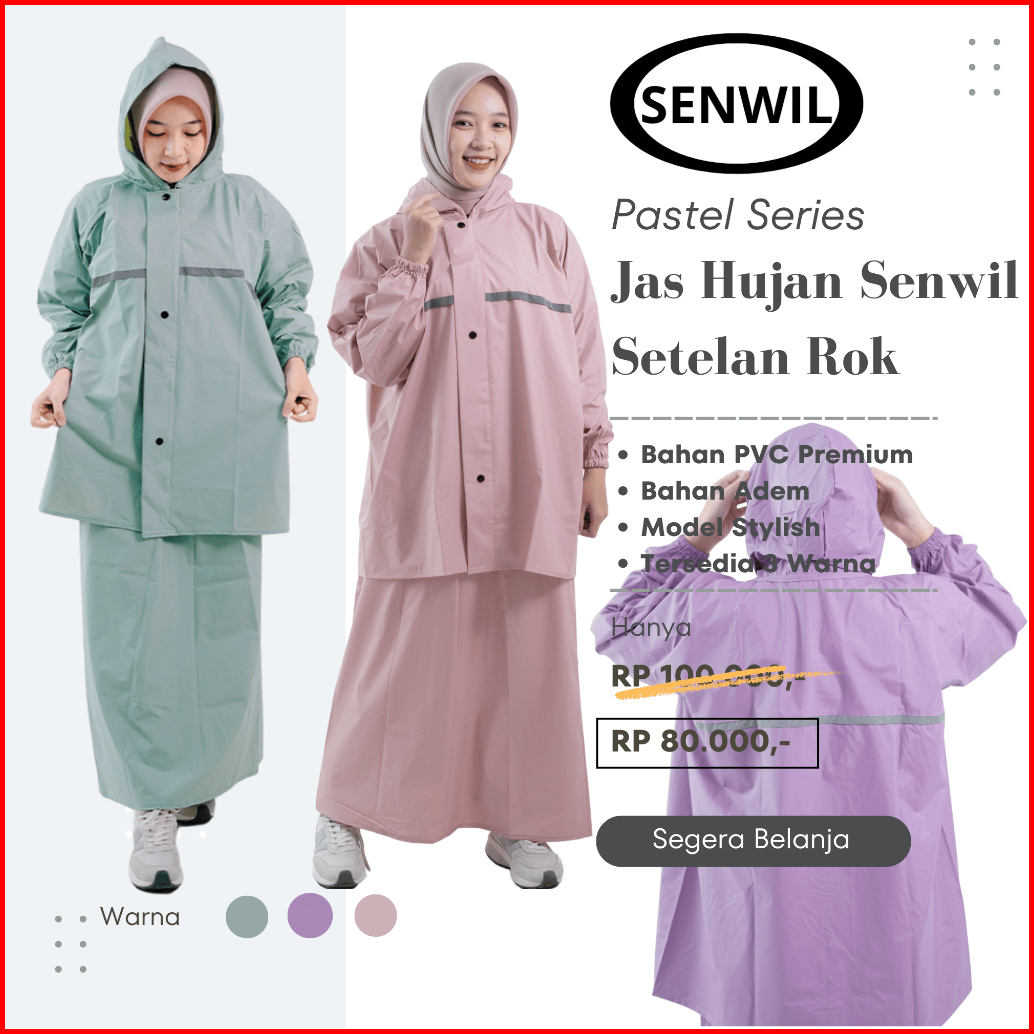 Jas Hujan Setelan Rok Wanita Dewasa Bahan Tebal Berkualitas Pvc 0 25 Anti Air Original Senwil