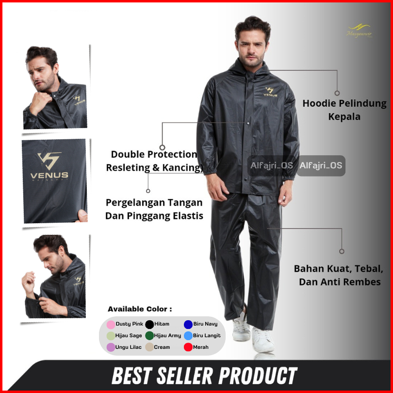 Jas Hujan Pria Dan Wanita Bahan Pvc 0 25 Tebal Anti Rembes Merk Venus