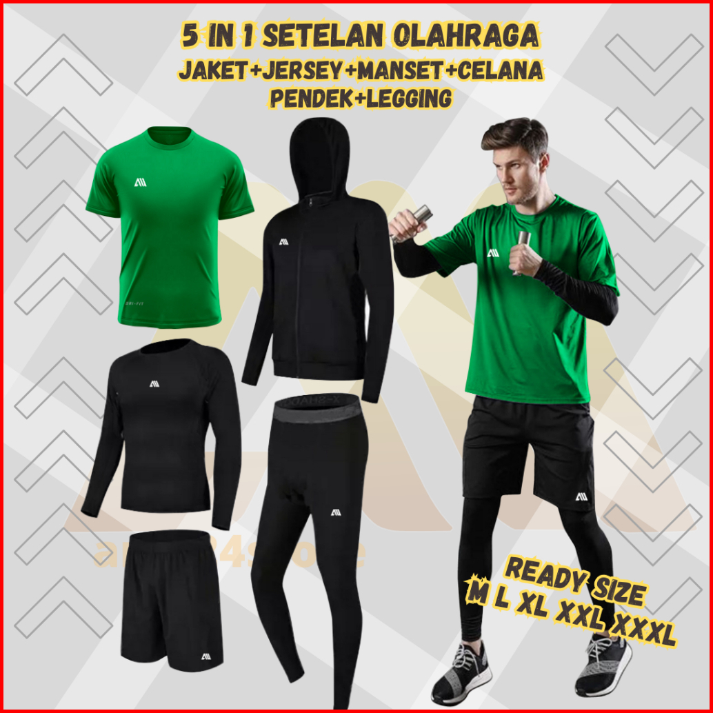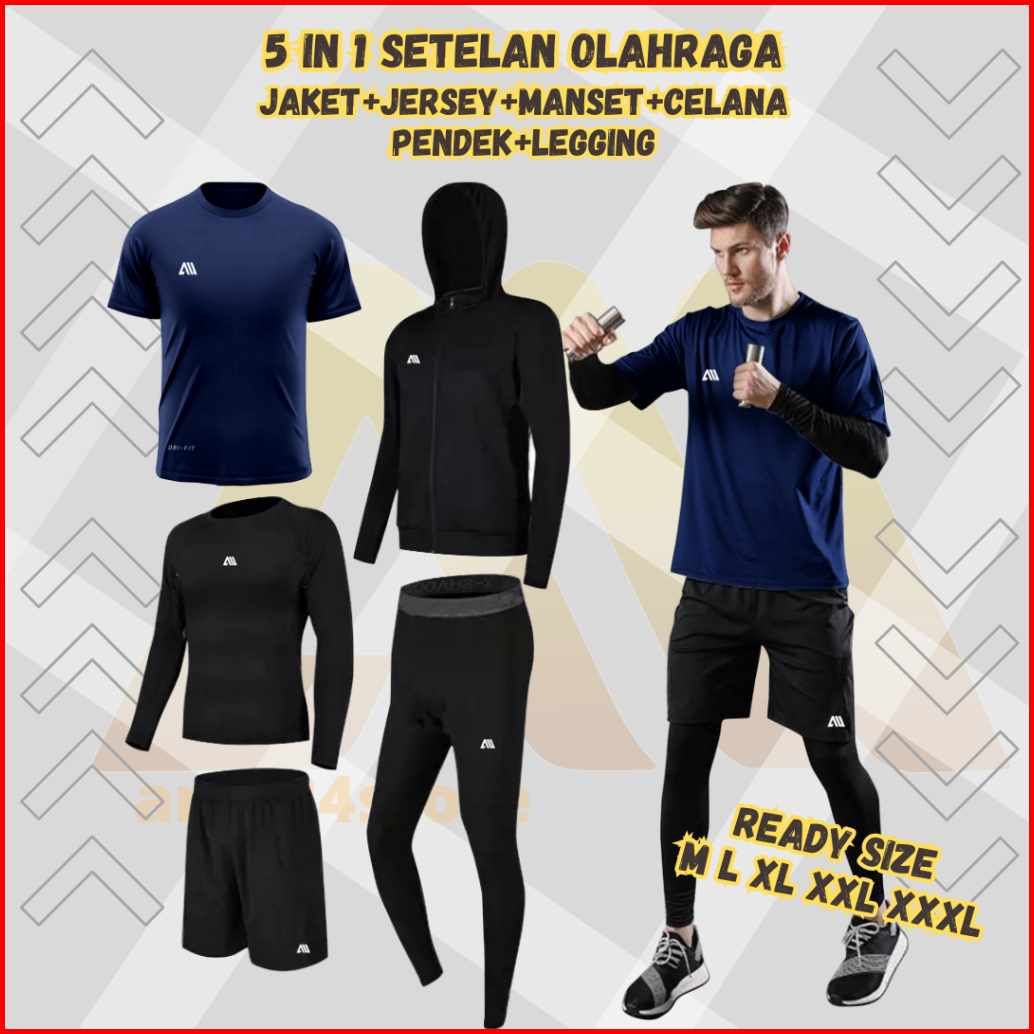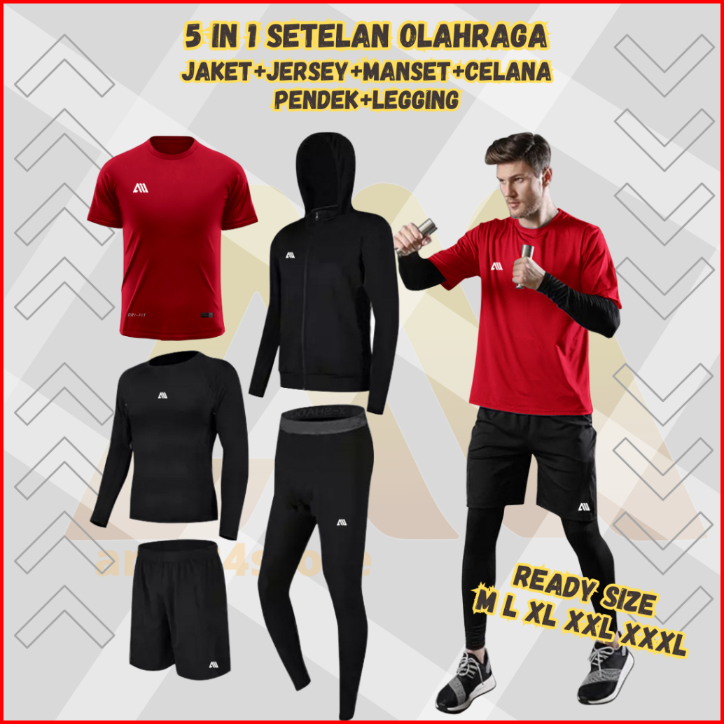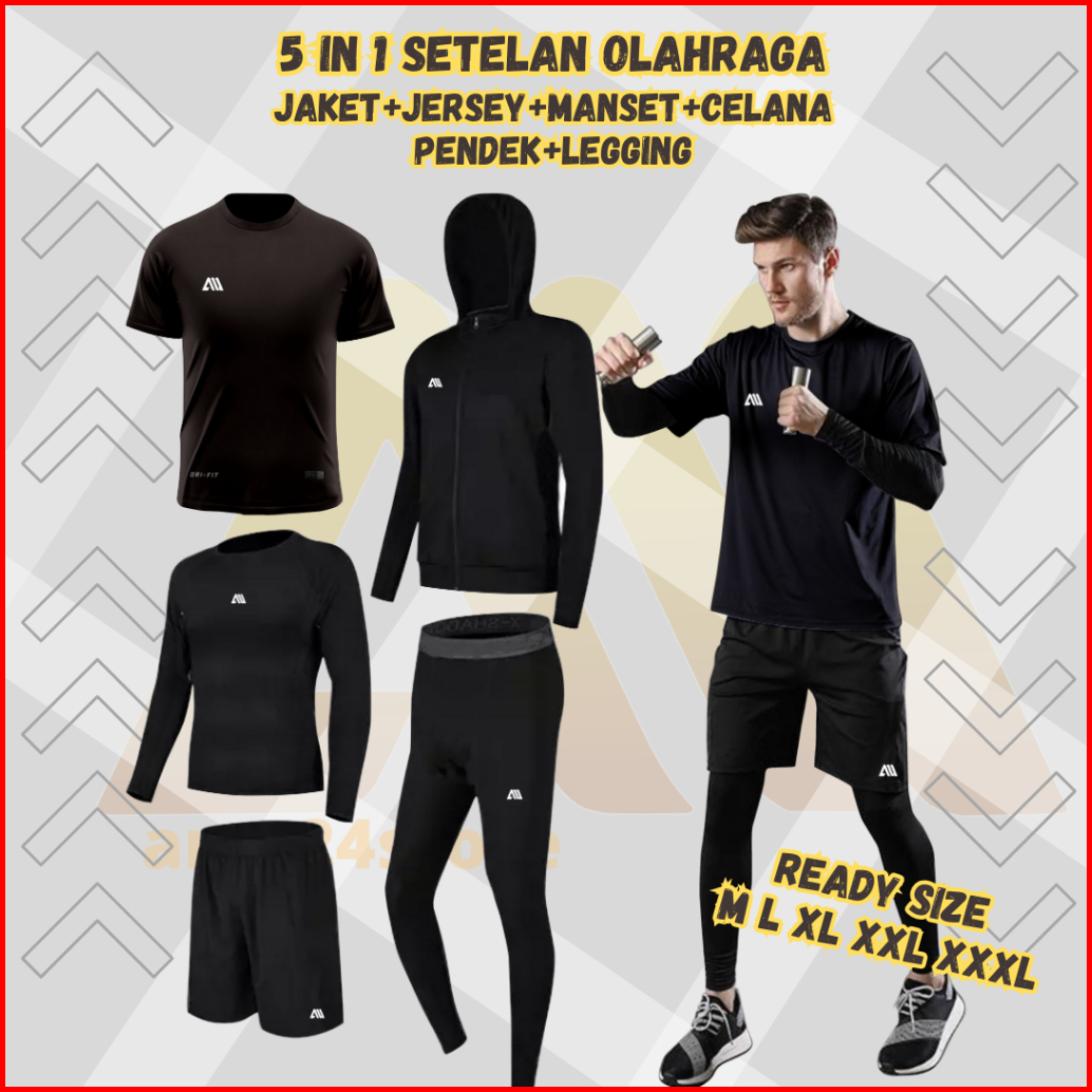5 In 1 Setelan Olahraga Sweater Hoodie Jersey Celana Pendek Manset Baselayer Legging