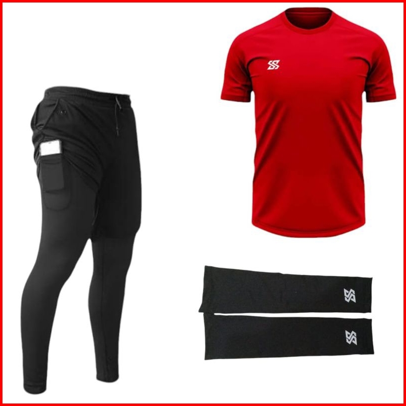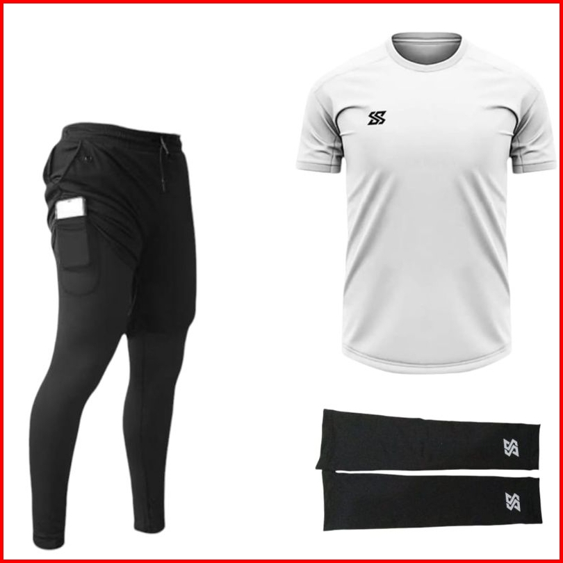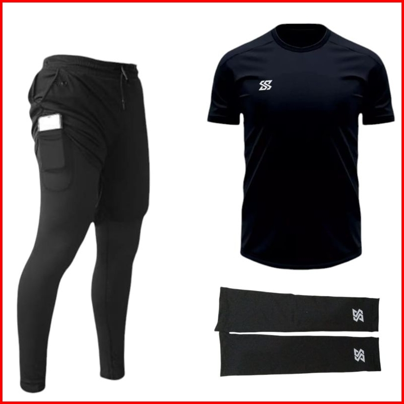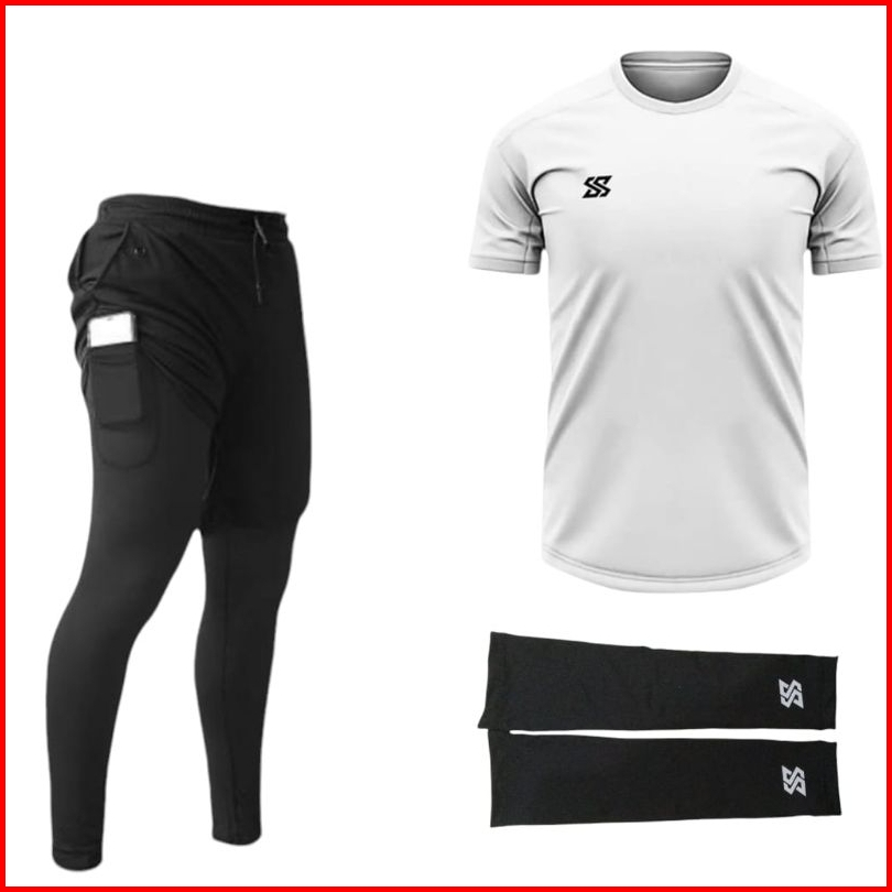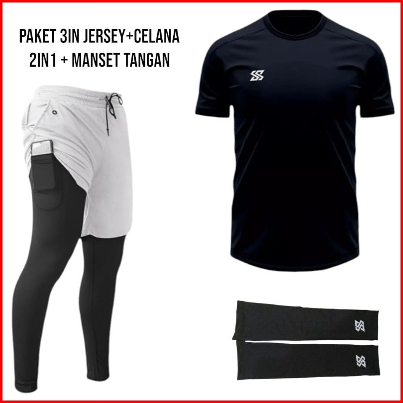 Stelan Jersey Baju Dan Celana 2in1 Panjang Olahraga Voli Lari Running Futsal Joging Fitnes Gym Pria Wanita