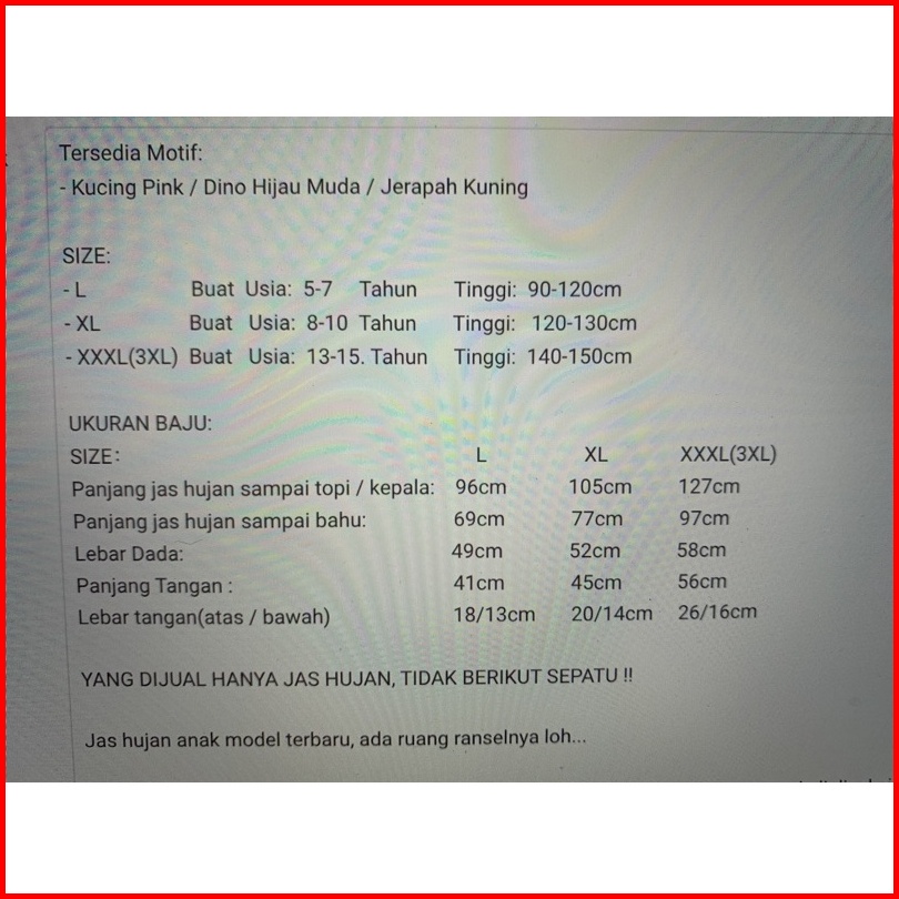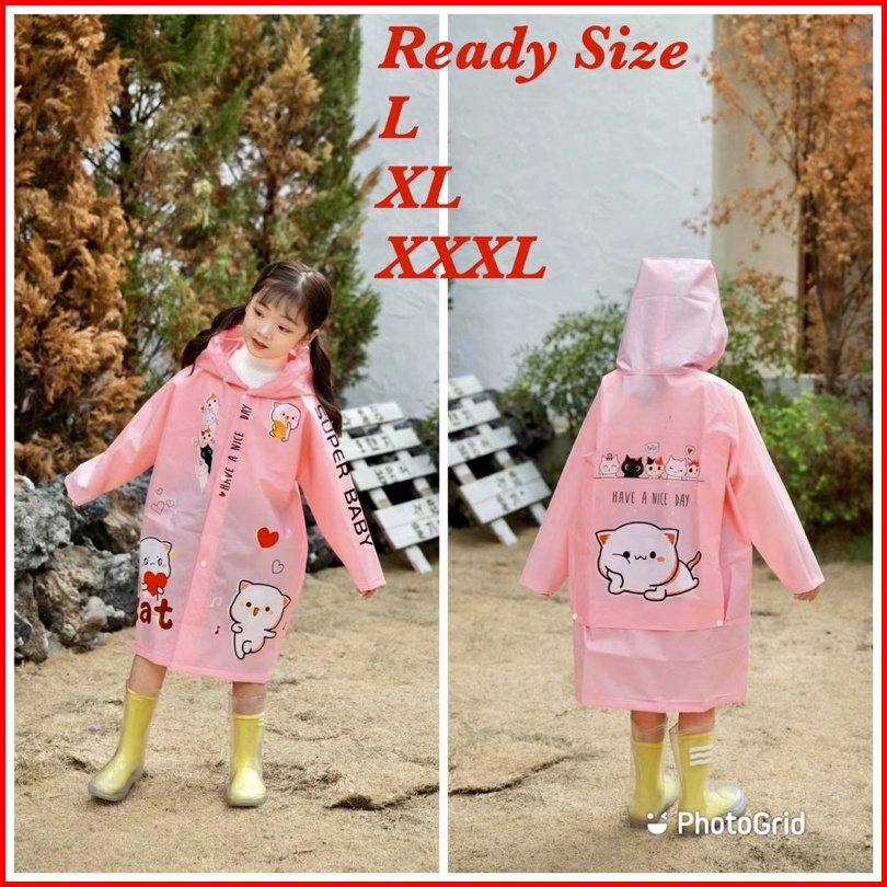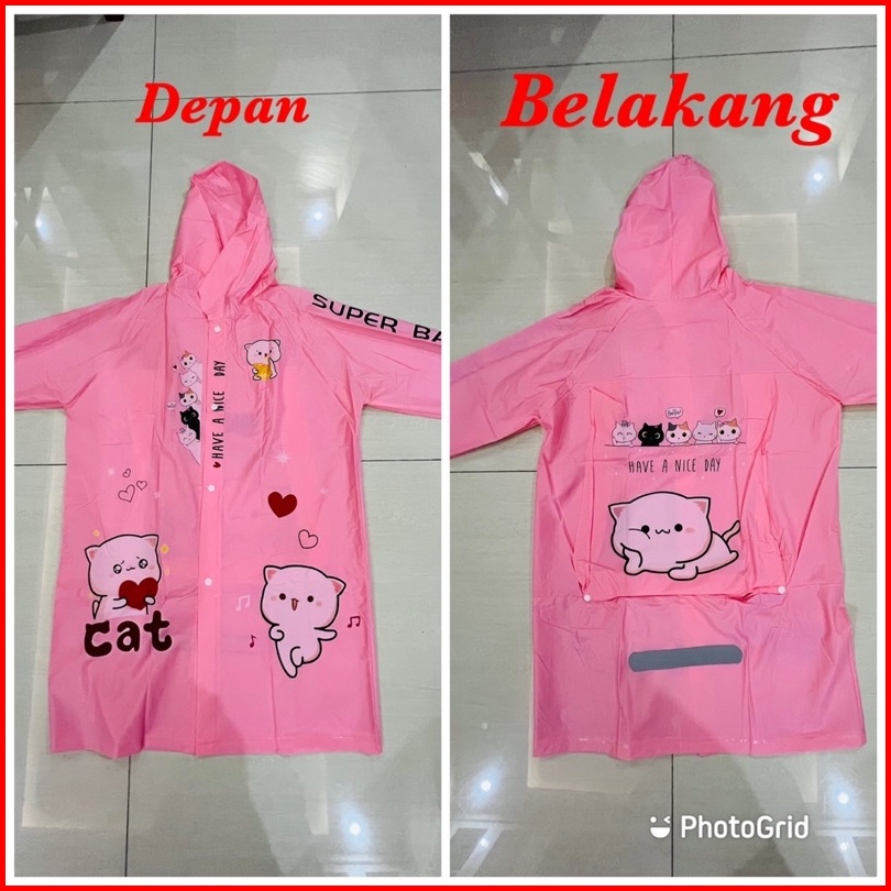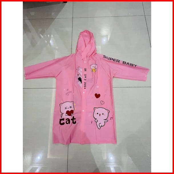 Jas Hujan Anak Motif Kucing Dino Dan Jerapah Dengan Ruang Ransel