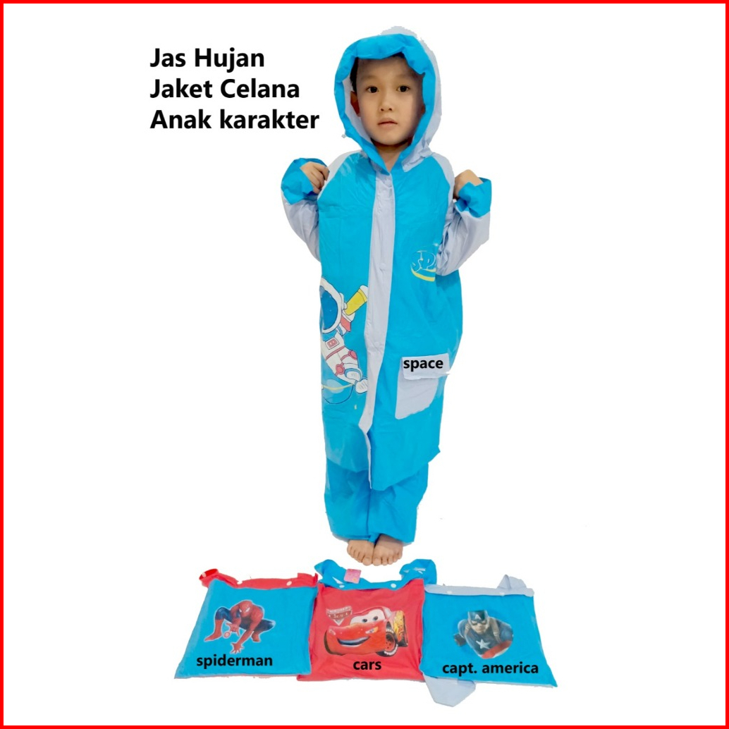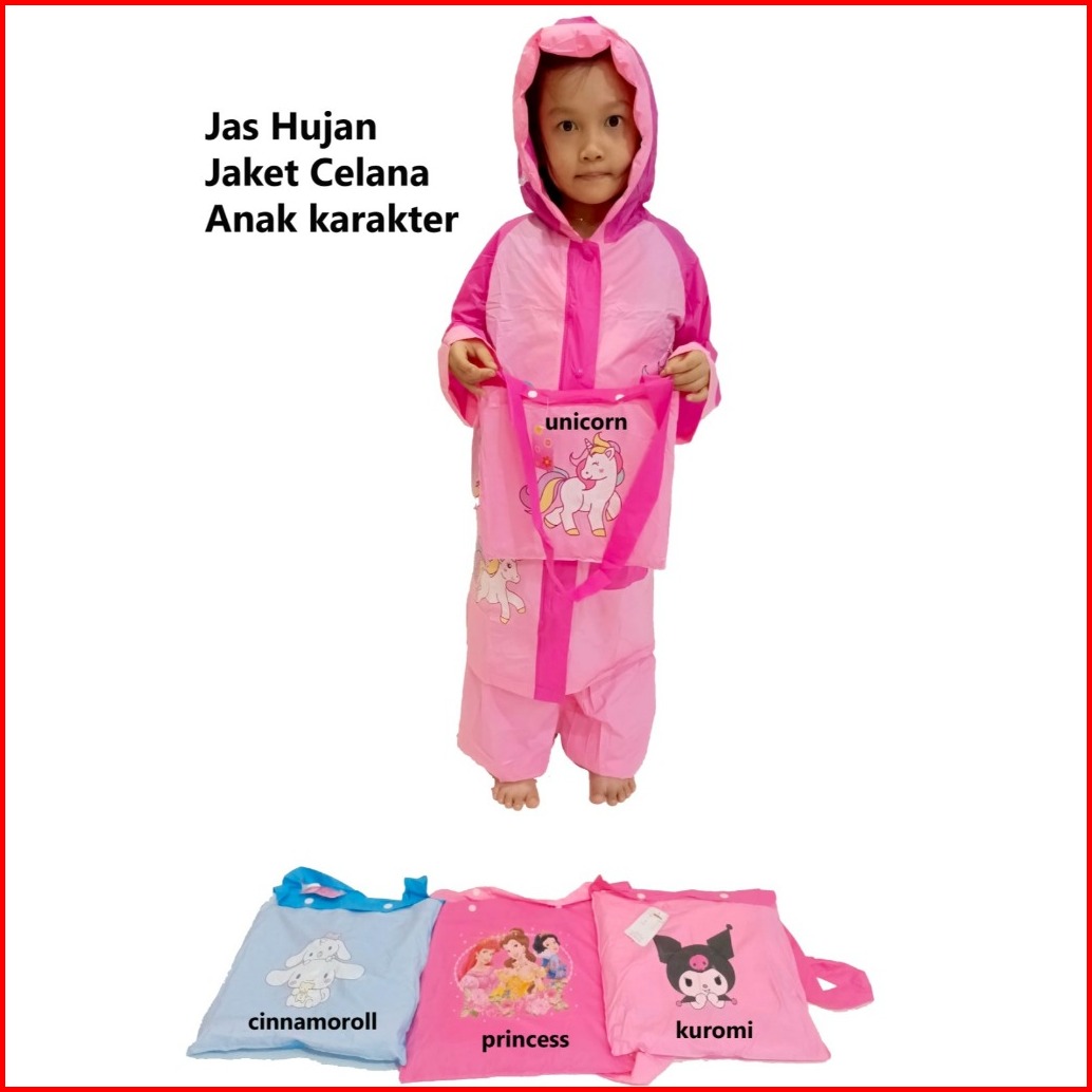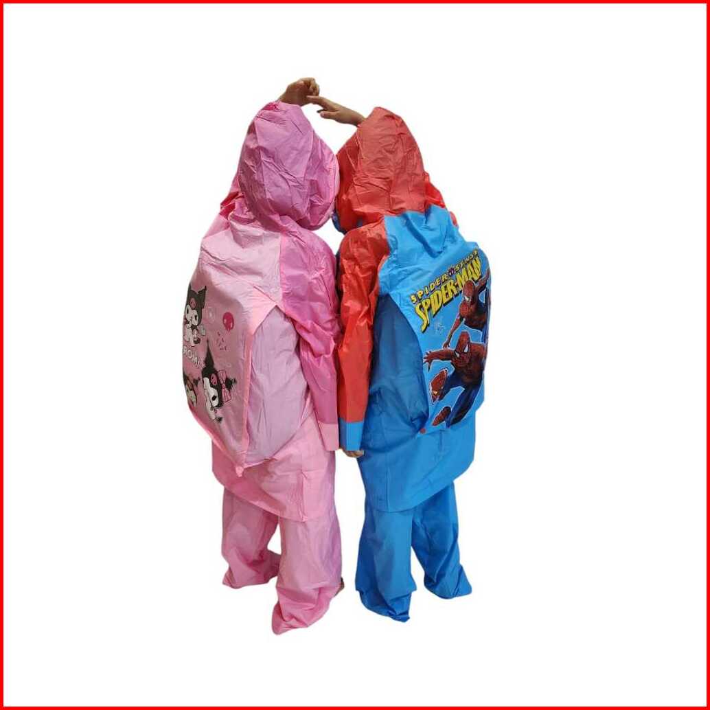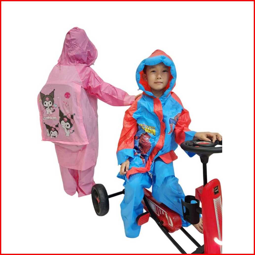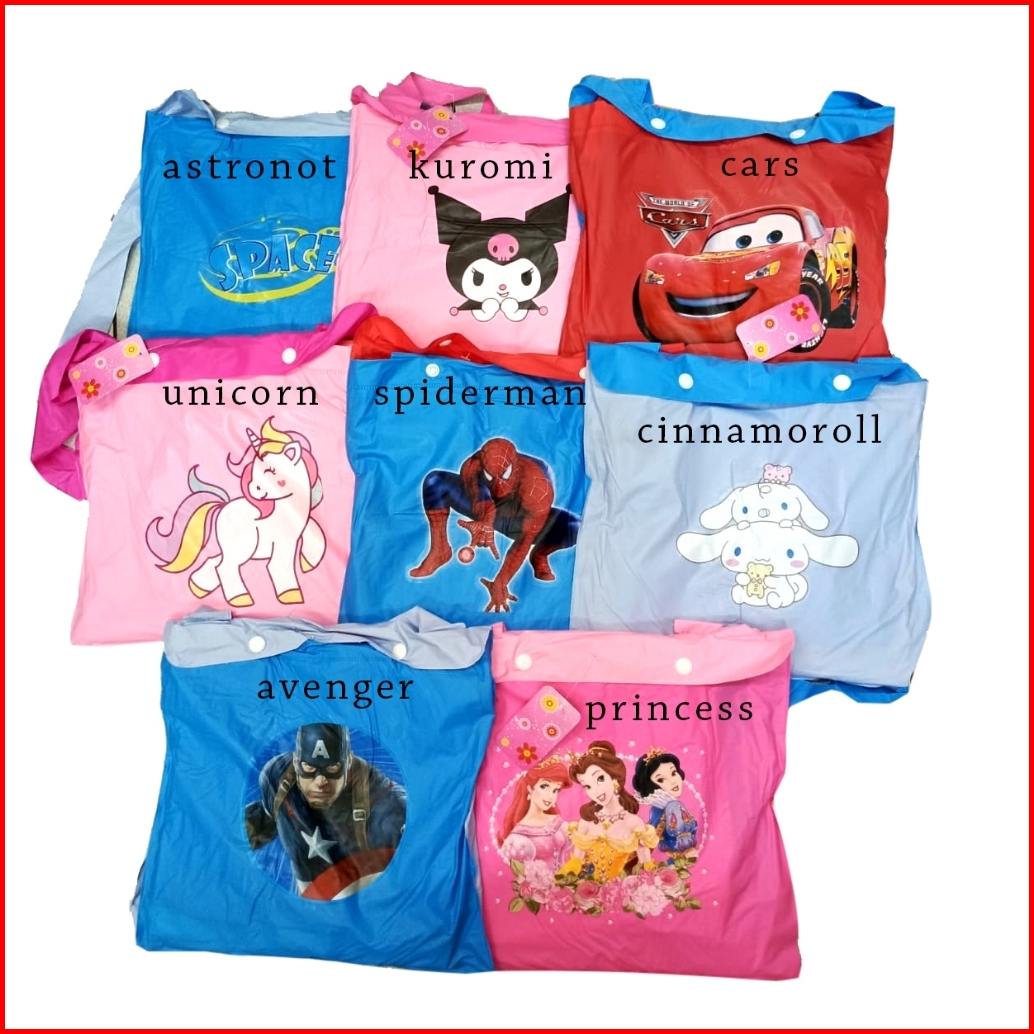 Felwinshop Jas Hujan Anak Laki Perempuan Jaket Celana Backpack Karakter Kuromi Spiderman Princess Cars Cinnamoroll Aveng