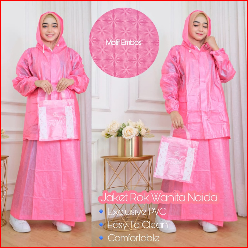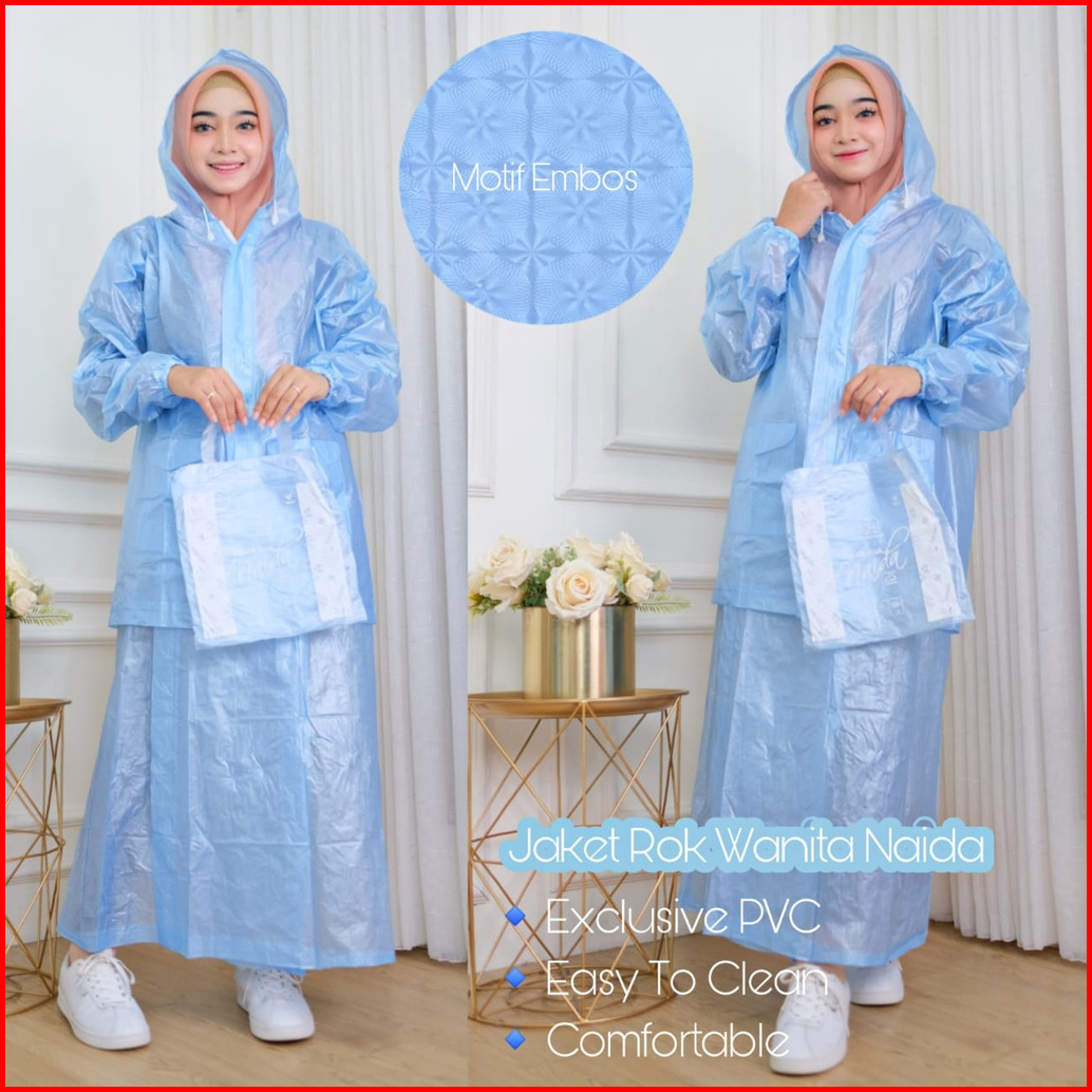 Jas Hujan Naida Rok Wanita Mantol Pvc