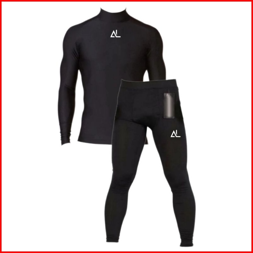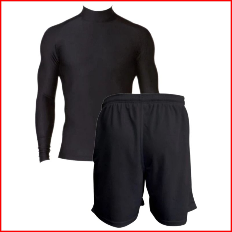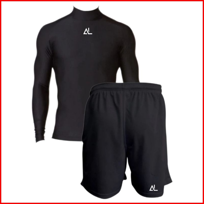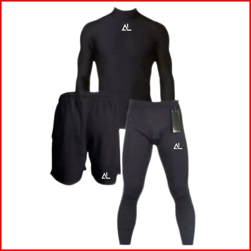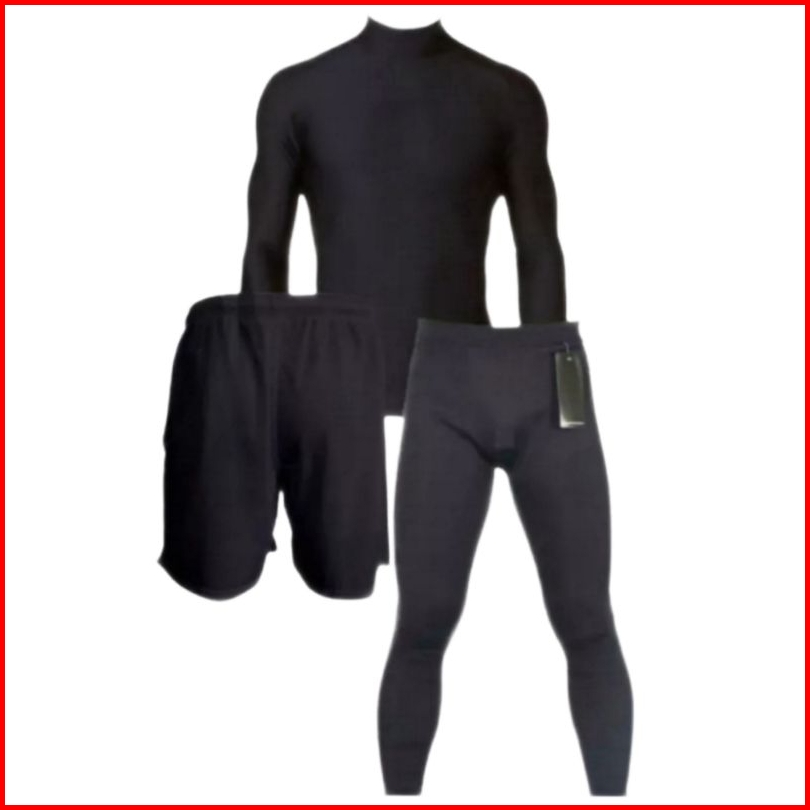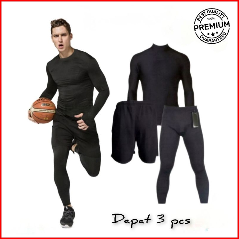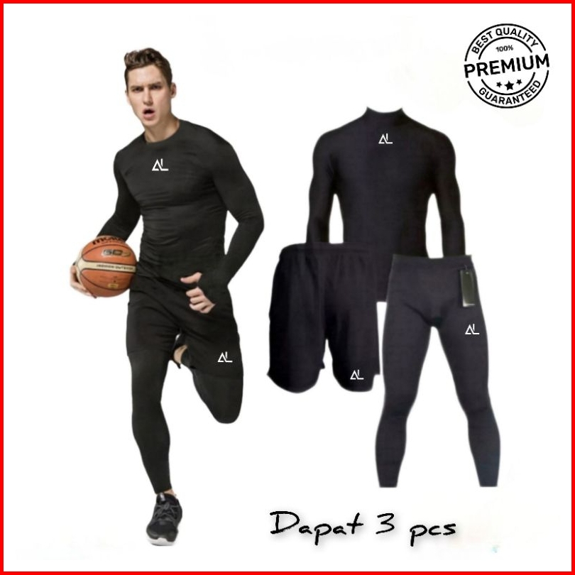 Full Set Olahraga Pria Baju Manset Lengan Panjang Celana Pendek Legging Baselayer Sport Futsal Lari Voly Gym Basket Sena