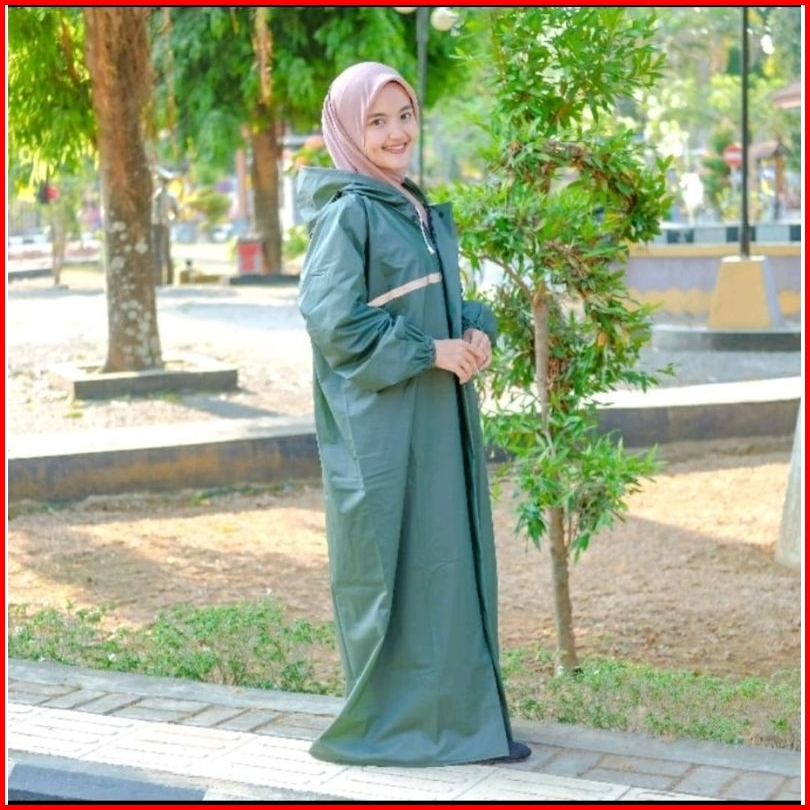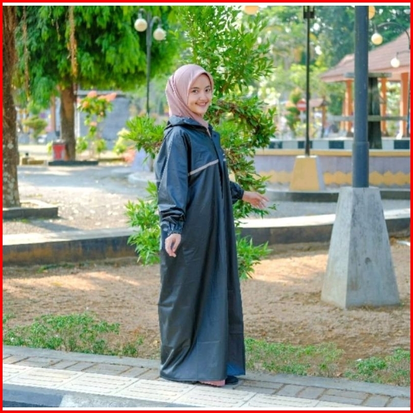 Jas Hujan Gamis Muslimah Syari Akenzo Bahan Tebal Pvc Karet