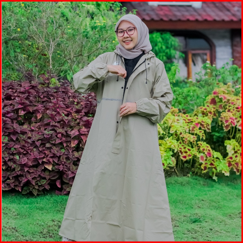 Jas Hujan Wanita Dewasa Model Gamis Syar I Mantel Wanita Muslimah Bahan Premium Tebal Dan Kuat Pvc Tahan Air