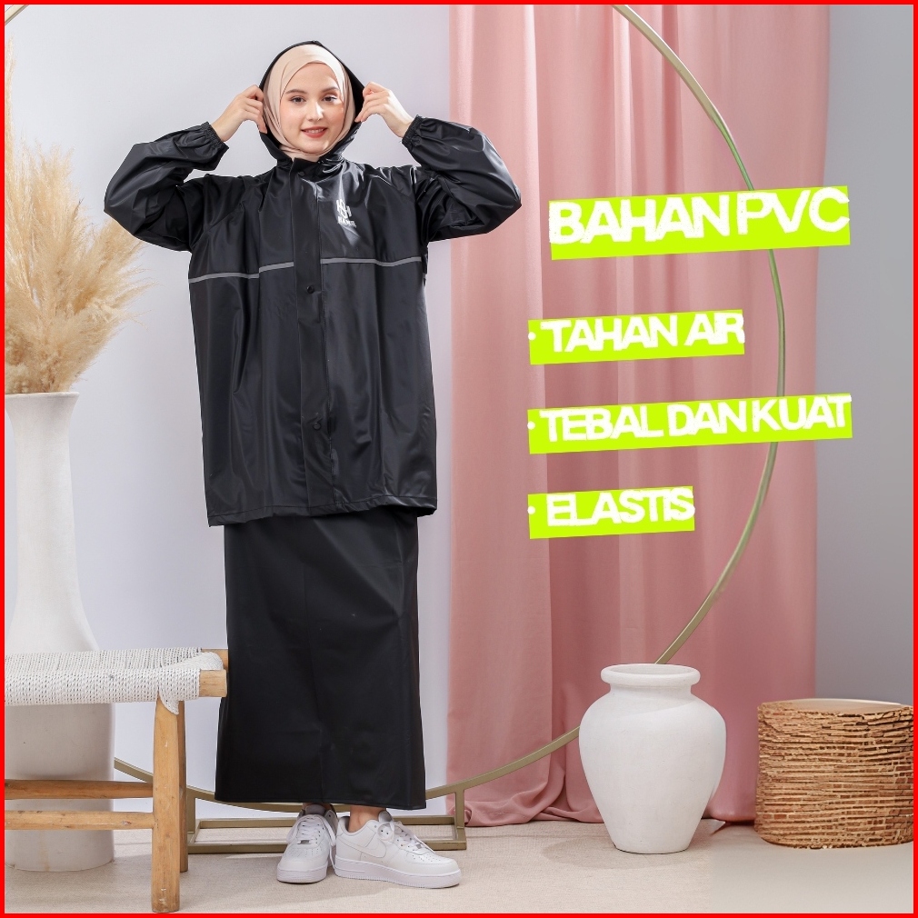 Jas Hujan Wanita Rok Mantel Hujan Setelan Baju Dan Rok Dewasa Bahan Tebal Kuat Anti Rembes By Hans