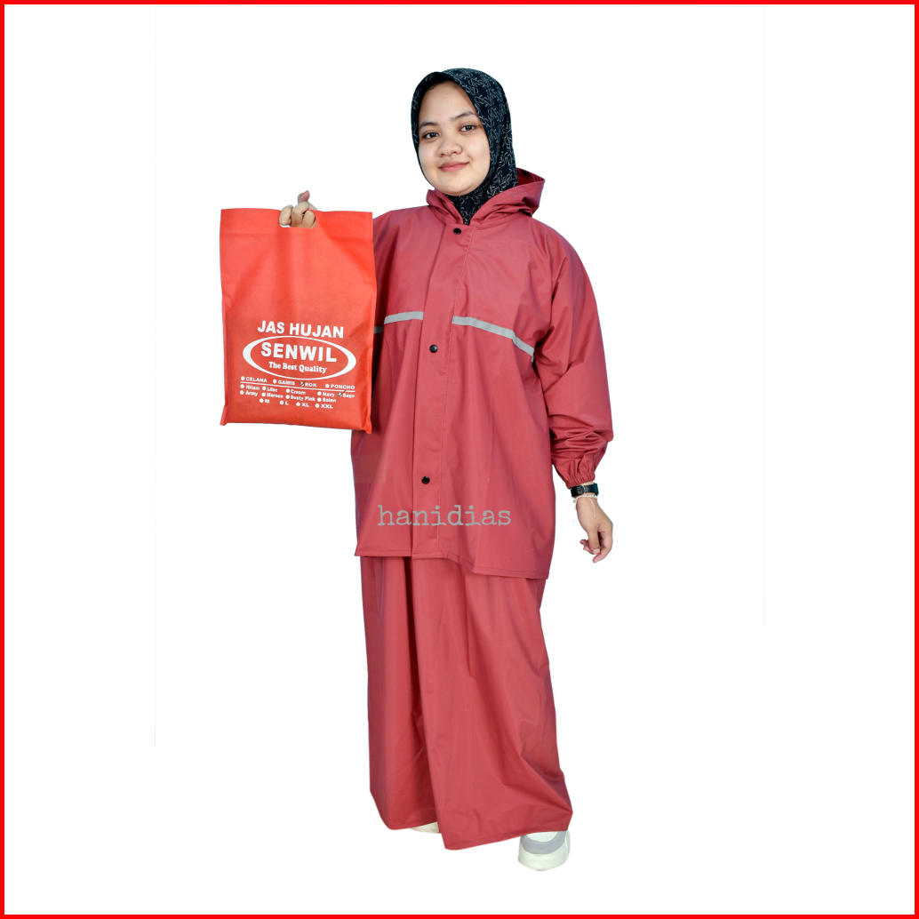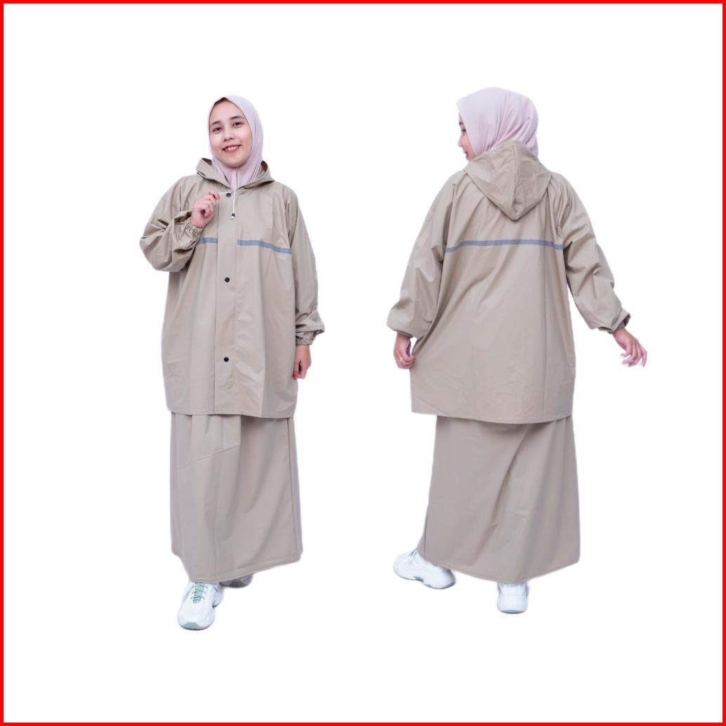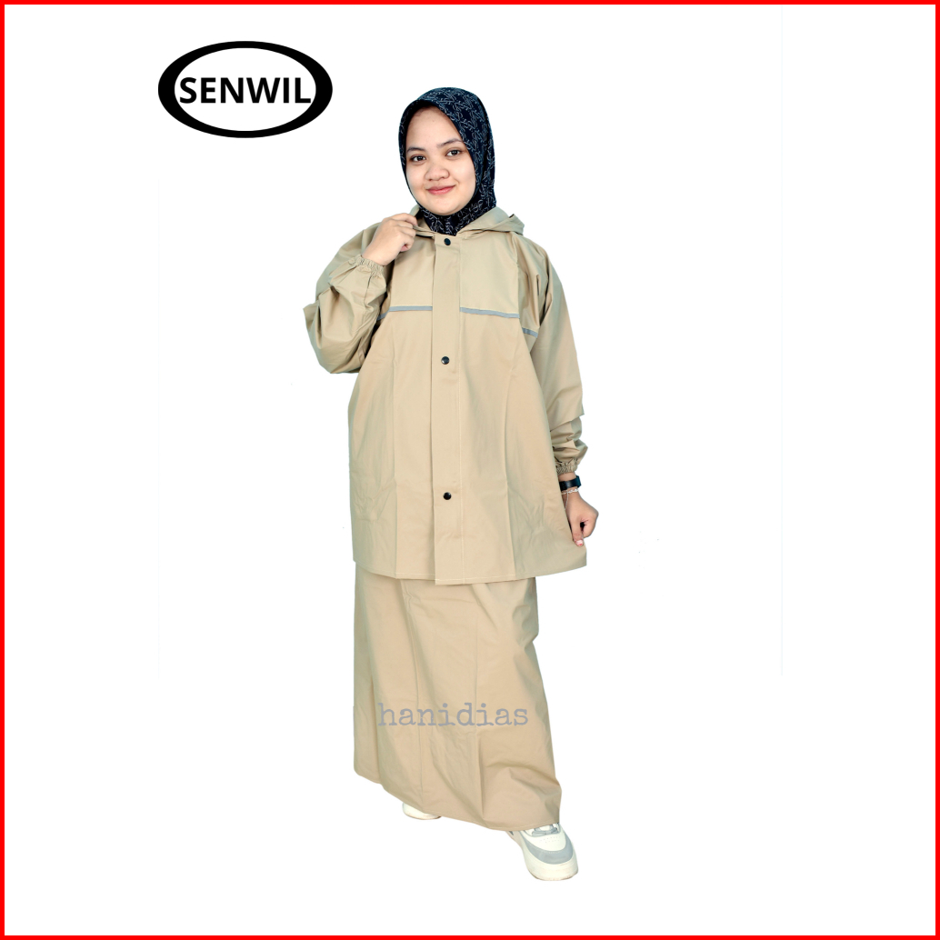 Jas Hujan Raincoat Setelan Rok Syar I Wanita Mocca Muslimah By Senwil Bahan Pvc Tebal Lentur