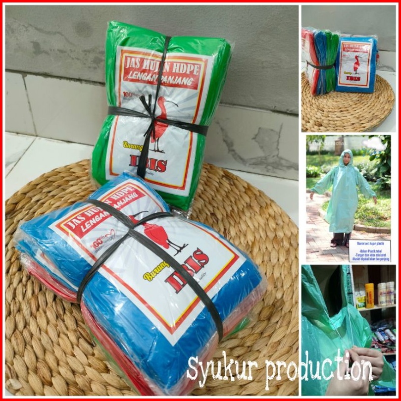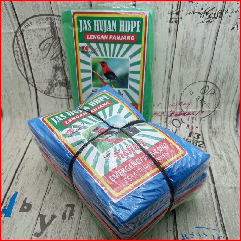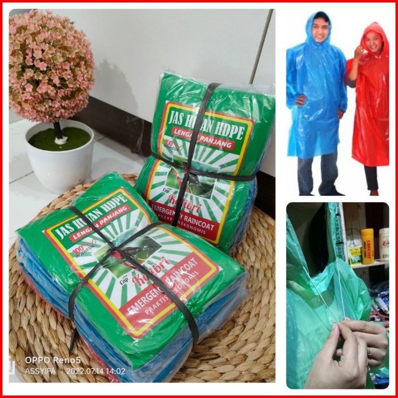 Jas Hujan Plastik Atasan Mantel Atasan Panjang Jas Hujan Ponco Isi 12 Pcs