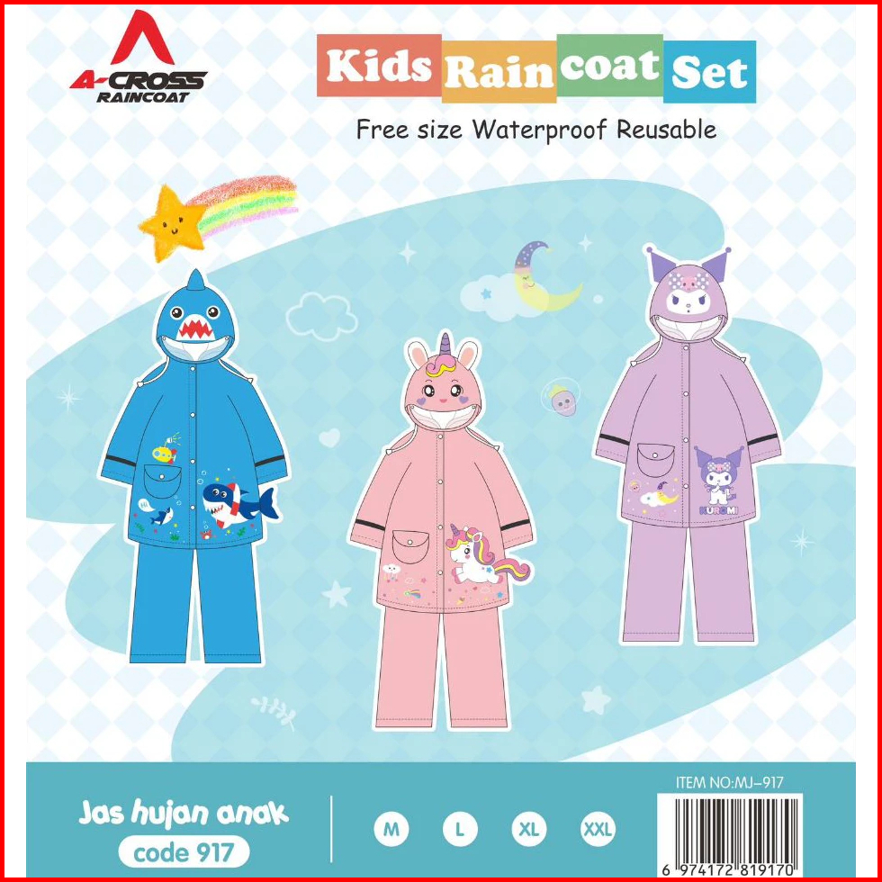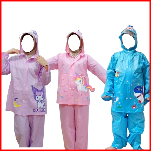 Jas Hujan Anak Baby Shark Unicorn Kuromi Stelan Karakter 3d Dengan Ruang Tas Ransel Ukuran Besar Laki Perempuan Cowok Ce