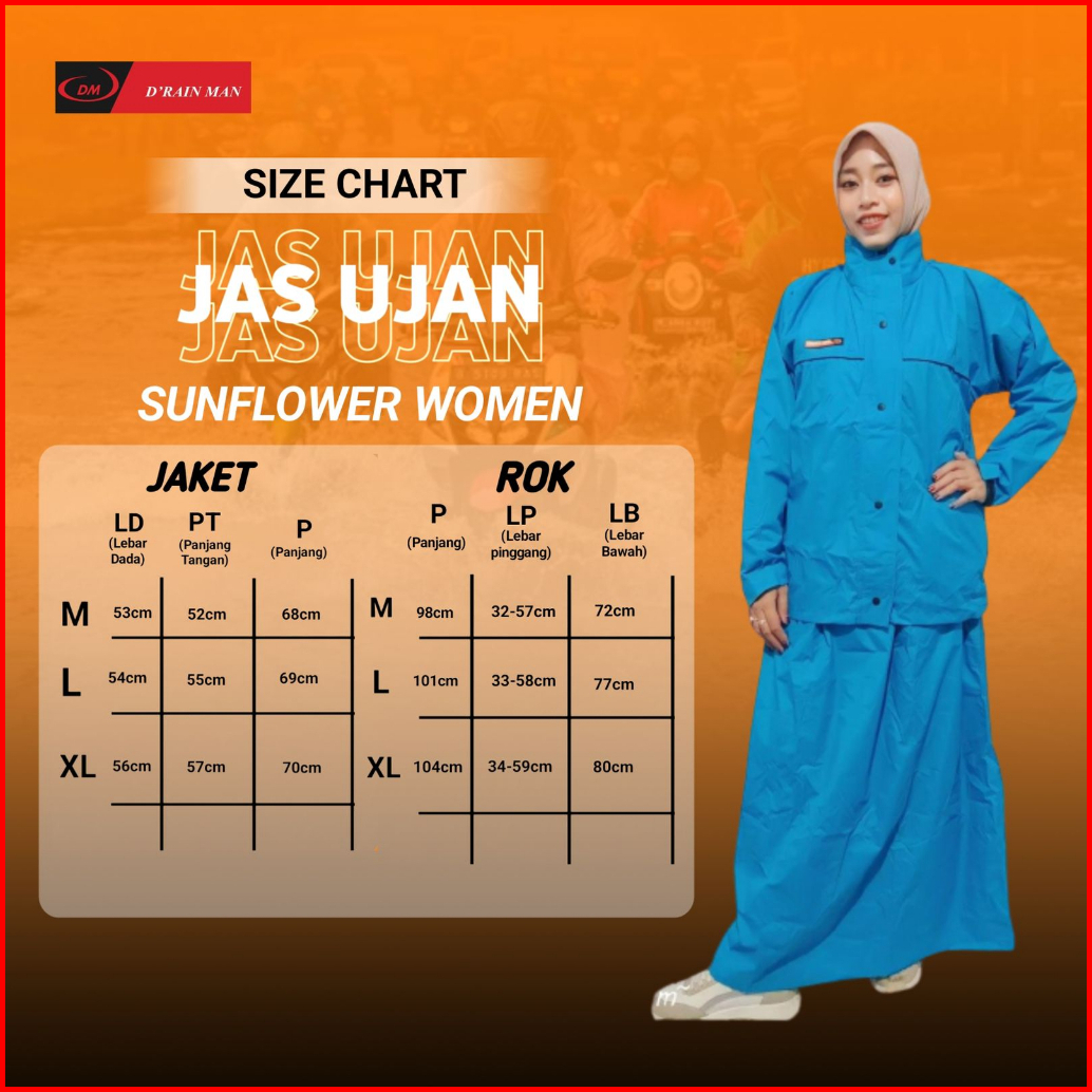 Jas Hujan Wanita Sunflower Rok Ladies Women Raincoat Muslimah