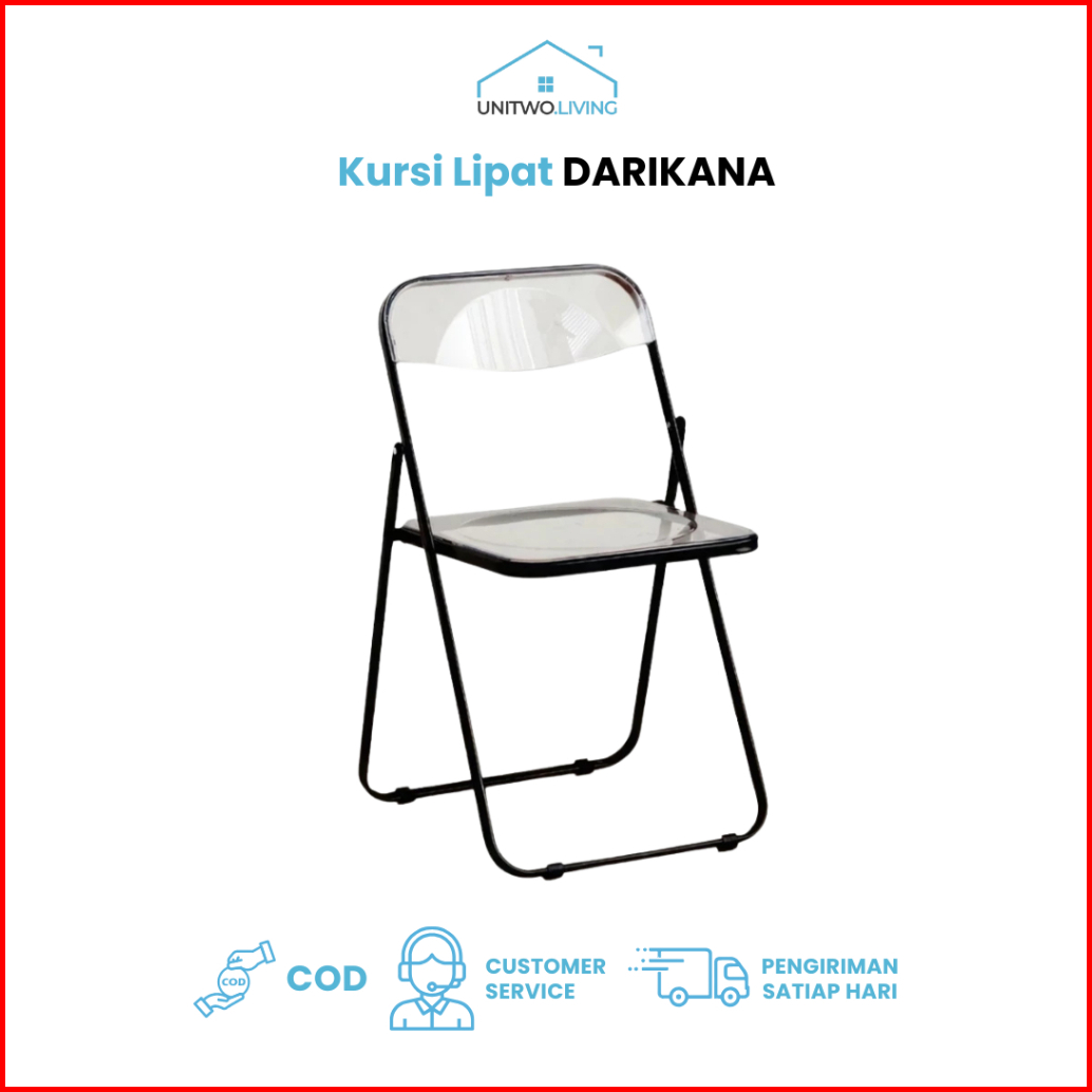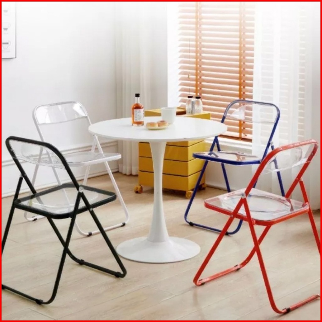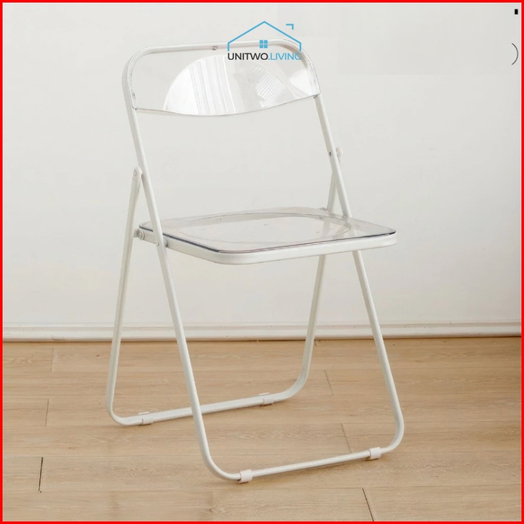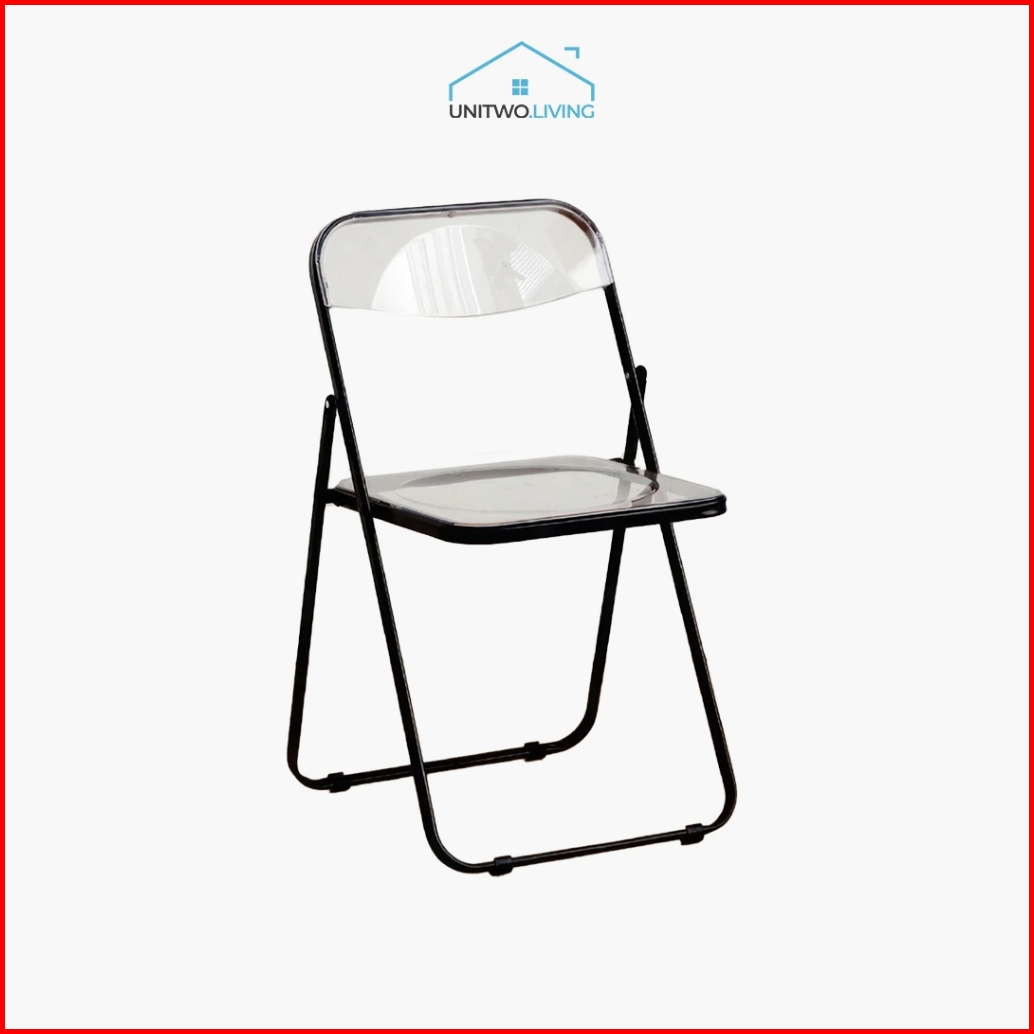 Unitwo Living Darikana Kursi Lipat Transparan Kursi Kantor Kursi Makan Kursi Akrilik Kristal 48cm X 90cm