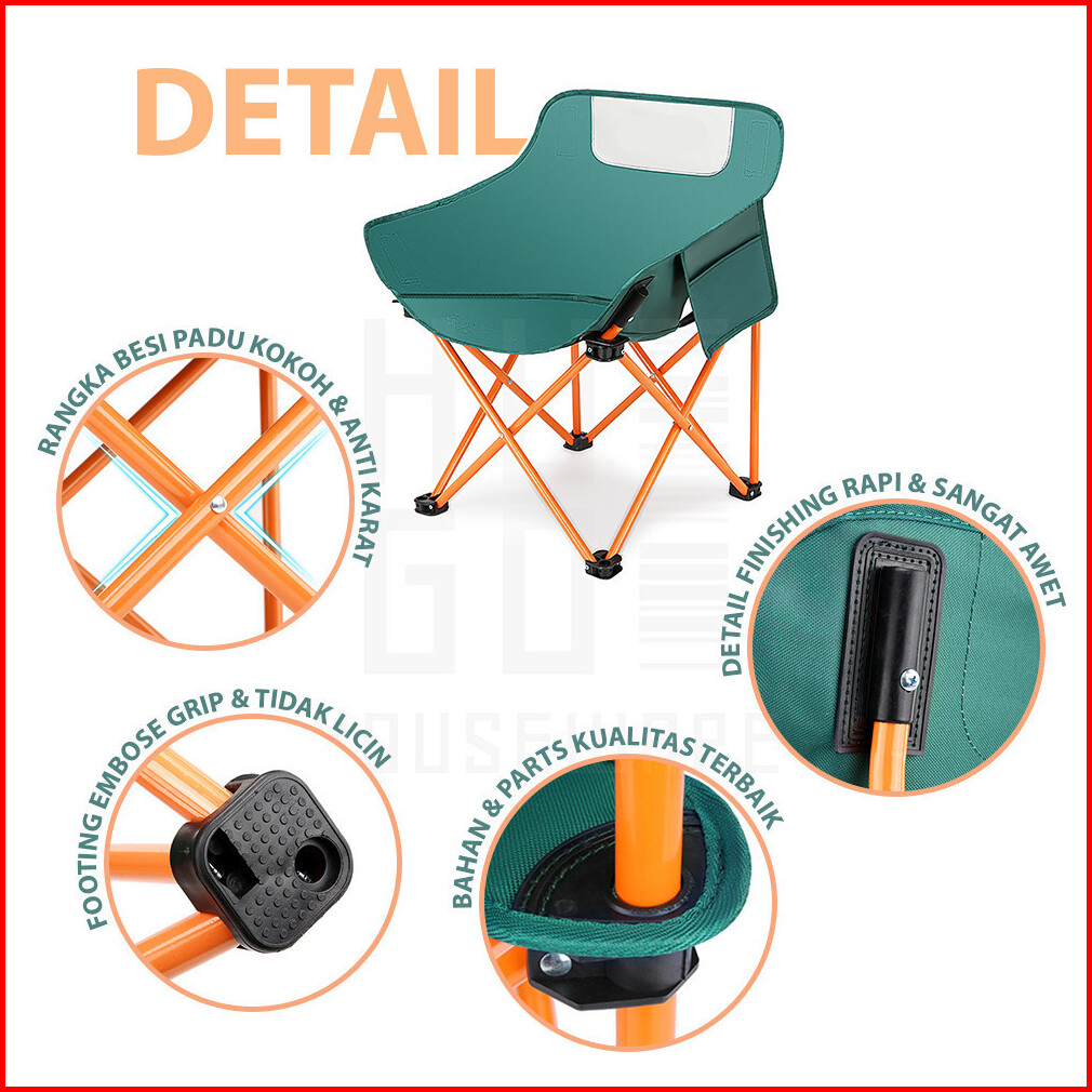 Paus Biru - Kursi Lipat Outdoor Kursi Moon Camping Chair Bulat Portable Lebih Kuat - Kursi Mancing Lipat Sandaran