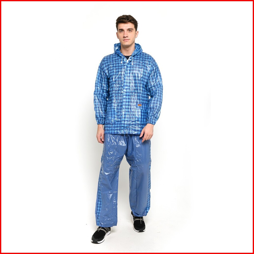 Elmondo Jas Hujan Karet Stelan Kotak - Kotak Jaket Celana Dewasa Elmondo 928