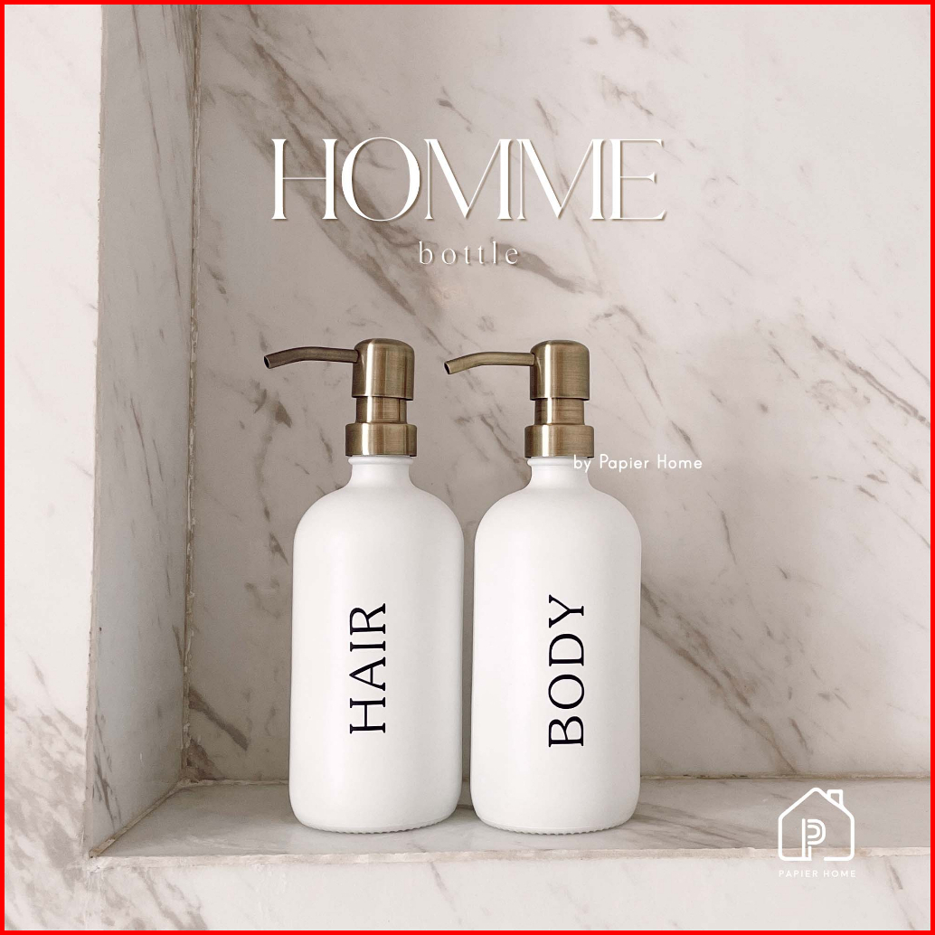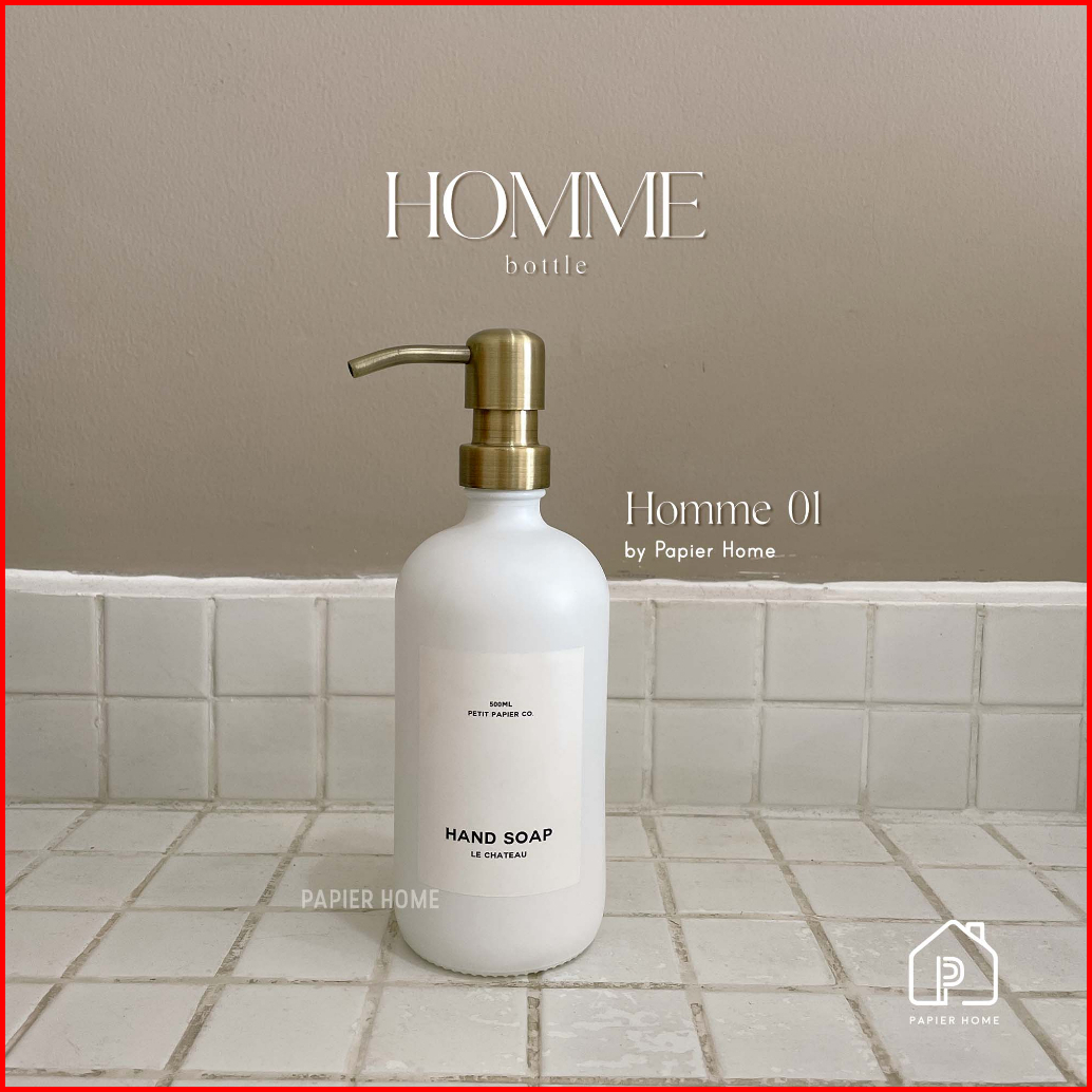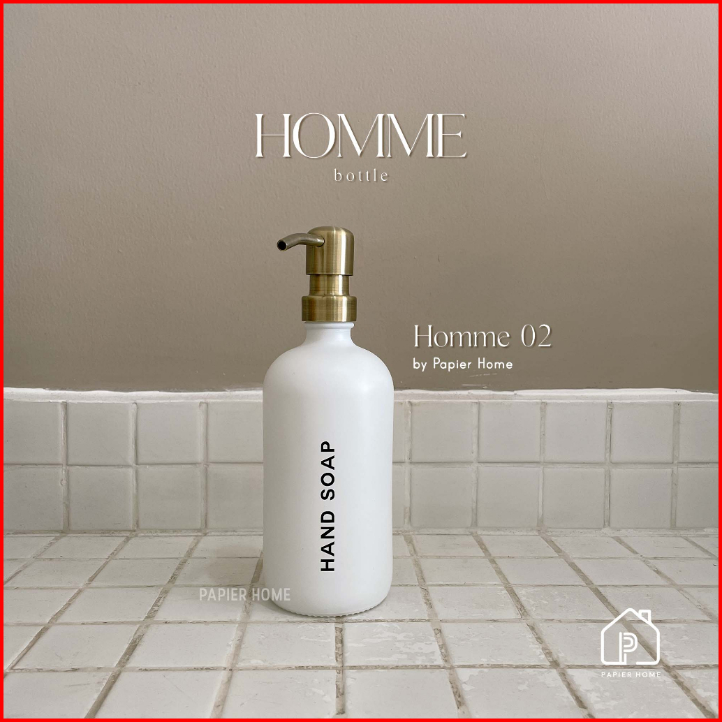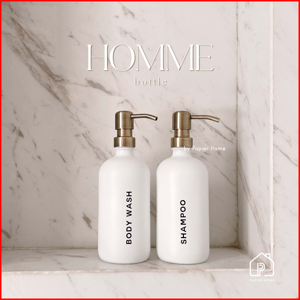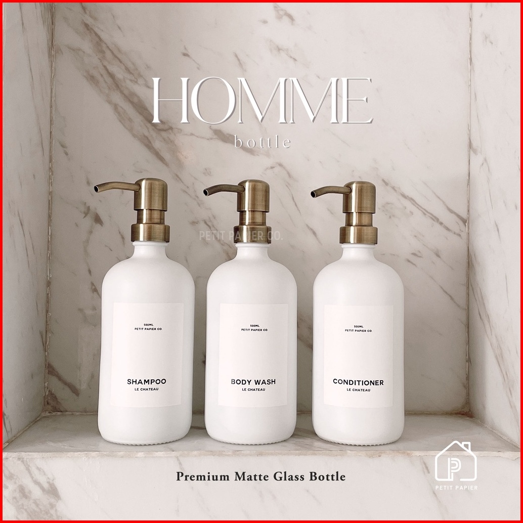Papier Home Homme White Botol Kaca Bathroom Glass Bottle Matte Dispenser Sabun Shampoo Refill